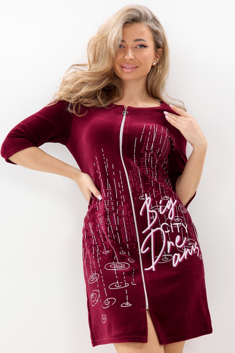 Халат женский Х-032 велюр (р-ры: 44-54) бордовый