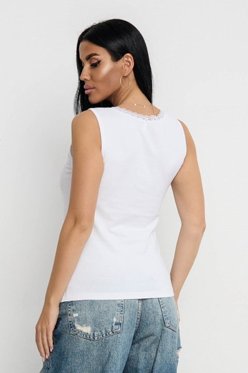 Представляем Вашему вниманию изящную женскую майку, украшенную кружевными вставками по горловине. Модель обеспечит максимум комфорта и полную свободу движений в повседневной носке.