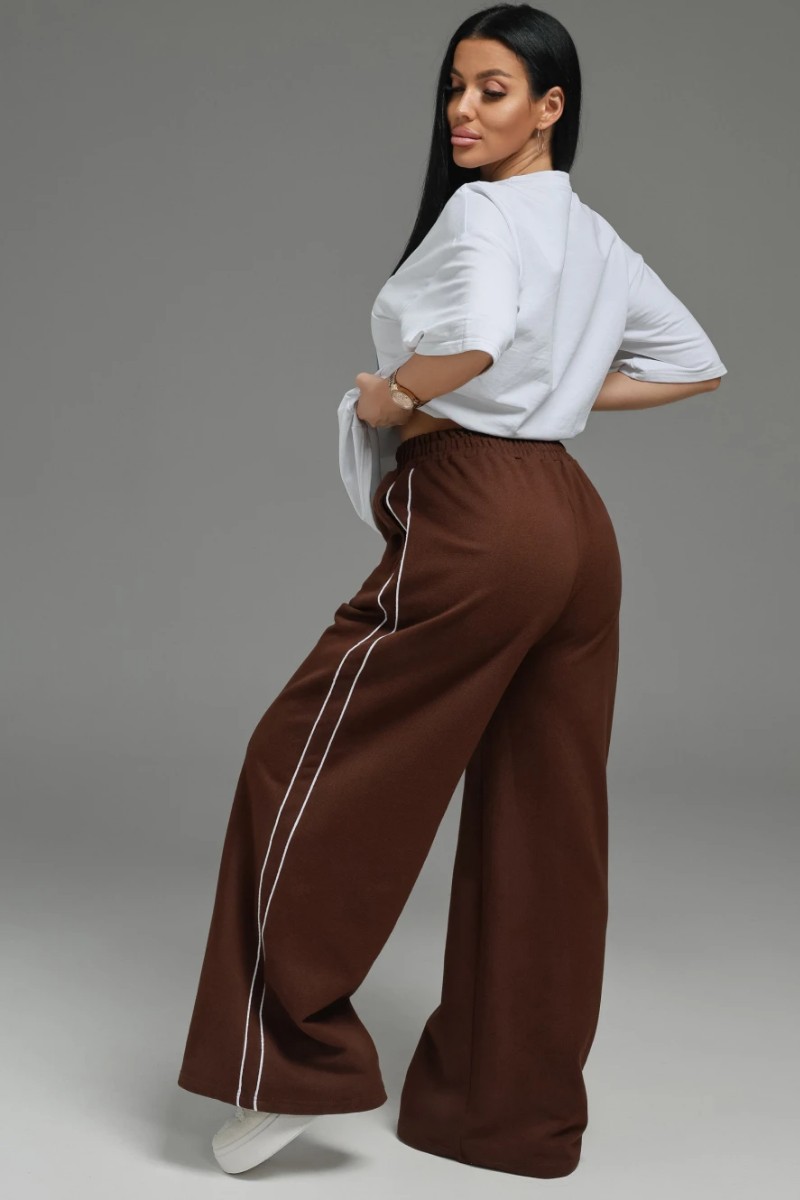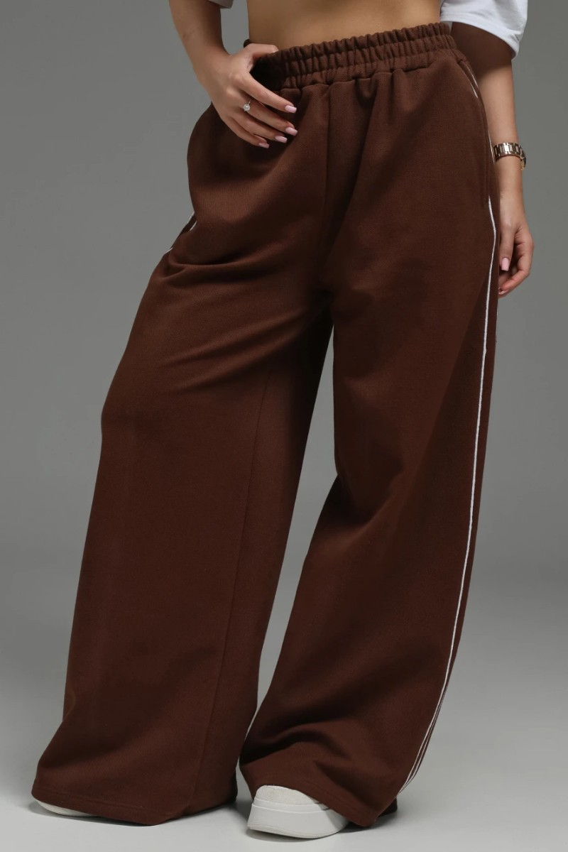 Представляем Вашему вниманию стильные брюки, в которых продумана каждая деталь. Модель построена на безупречном балансе комфорта и стиля. Мягкая резинка в сочетании с отрезным поясом гарантирует удобную посадку, которая не сковывает движений. Дизайн модели обогащён двумя ключевыми элементами: Функциональность: В боковые швы втачаны удобные прорезные карманы, сохраняющие чистоту линий. Эстетика: Вдоль боковых швов проходит стройный декоративный лампас, подчёркнутый контрастным кантом. Эта изящная полоска — фирменный штрих, который делает силуэт стройнее, а образ — завершённым и по-спортивному элегантным. Идеальный выбор для создания модного casual-образа, где во главе угла — лёгкость и внимание к деталям.