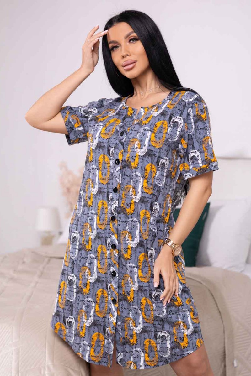 Халат женский 2066/1 кулирка (р-ры: 48-58) серый-оранжевый