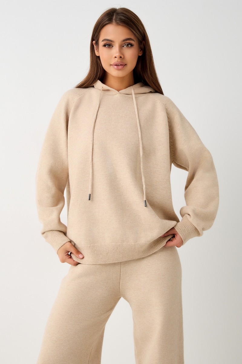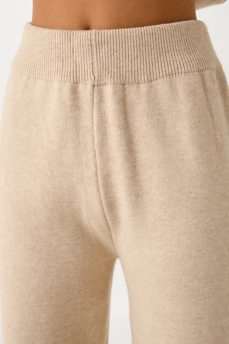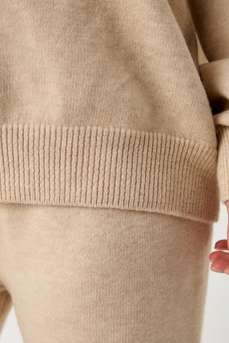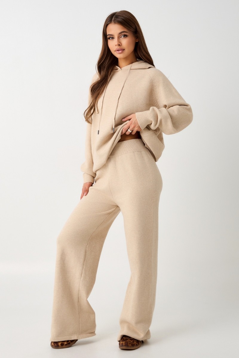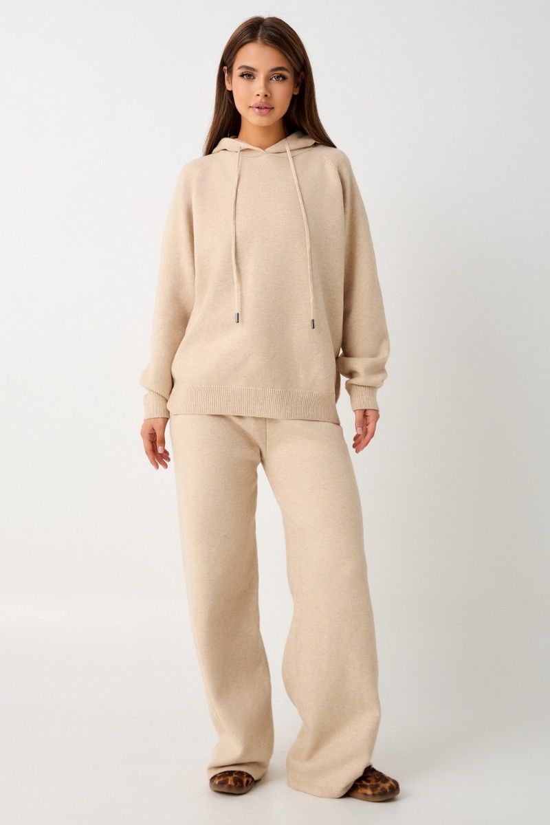 Представляем Вашему вниманию вязаный костюм, который станет незаменимой основой женского гардероба для прохладной погоды, комфортным способом утепления. Он сшит из мягкой, приятной к телу пряжи с шерстяными волокнами, которая надолго сохраняет насыщенность цвета и свою форму, выдерживая интенсивное ношение и частые стирки. Стильный дизайнерский комплект отличается продуманным дизайном. Брюки - спортивки с широким поясом - резинкой, длинными штанинами, подчеркивают силуэт, не сковывая движений. Универсальность классической пастельной палитры и лаконичного дизайна позволяет легко включать комплект в коллекцию вещей для осенне - весеннего демисезонного и зимнего периода. Он идеально сочетается с однотонными вариантами обуви и нарядными праздничными аксессуарами для создания элегантного и собранного образа.