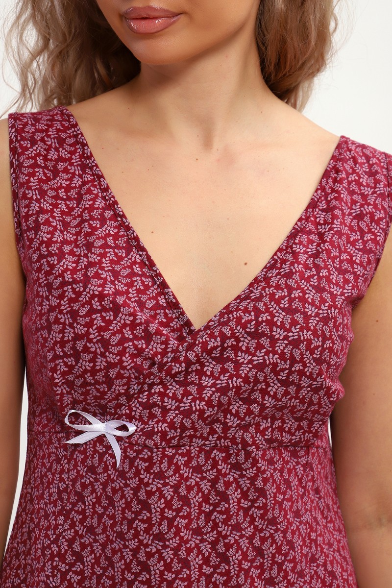 Представляем Вашему вниманию лёгкую женскую сорочку с V-образным вырезом. Полочка отрезная под грудью. Юбка с рельефами. Нашиты бантики. Подходит для беременных. Сшито из 100% хлопка.