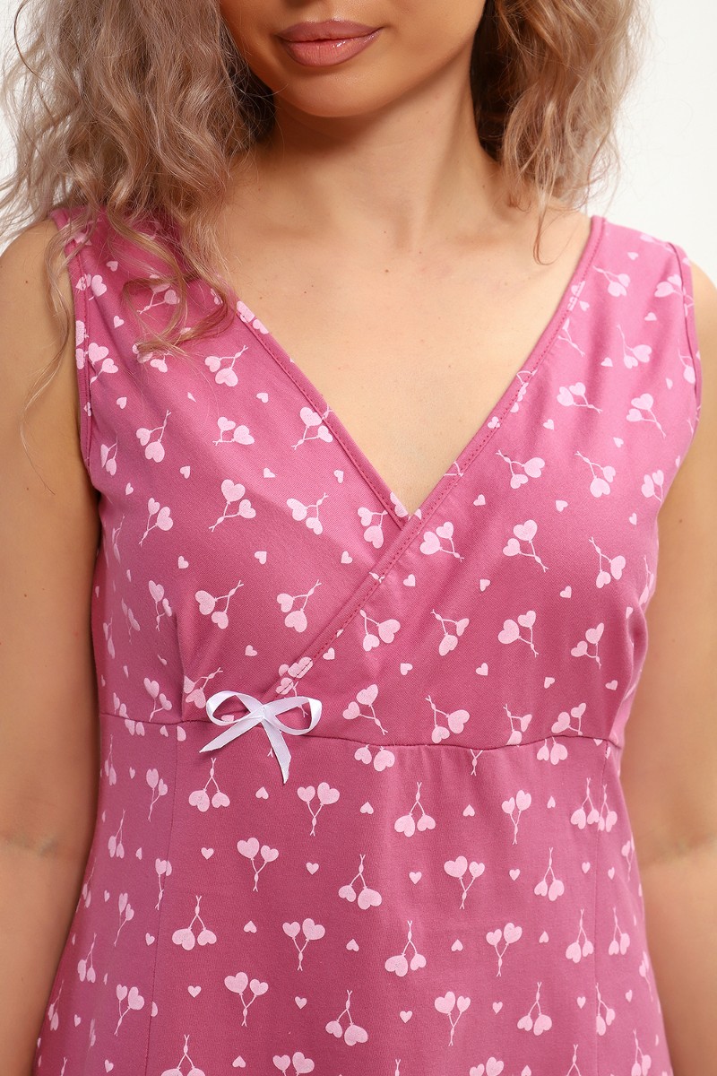 Представляем Вашему вниманию лёгкую женскую сорочку с V-образным вырезом. Полочка отрезная под грудью. Юбка с рельефами. Нашиты бантики. Подходит для беременных. Сшито из 100% хлопка.