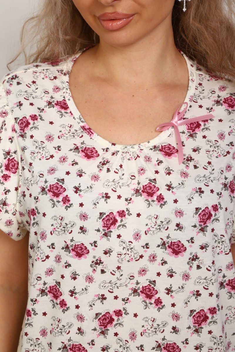 Сорочка женская №318 кулирка (р-ры: 50-60) молочный-цветы