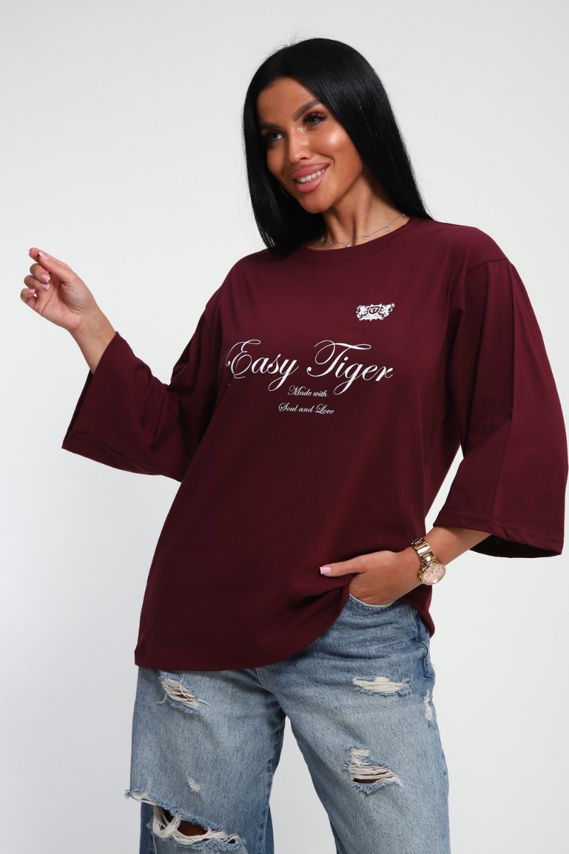 Футболка женская №657 кулирка (р-ры: one size) бордовый