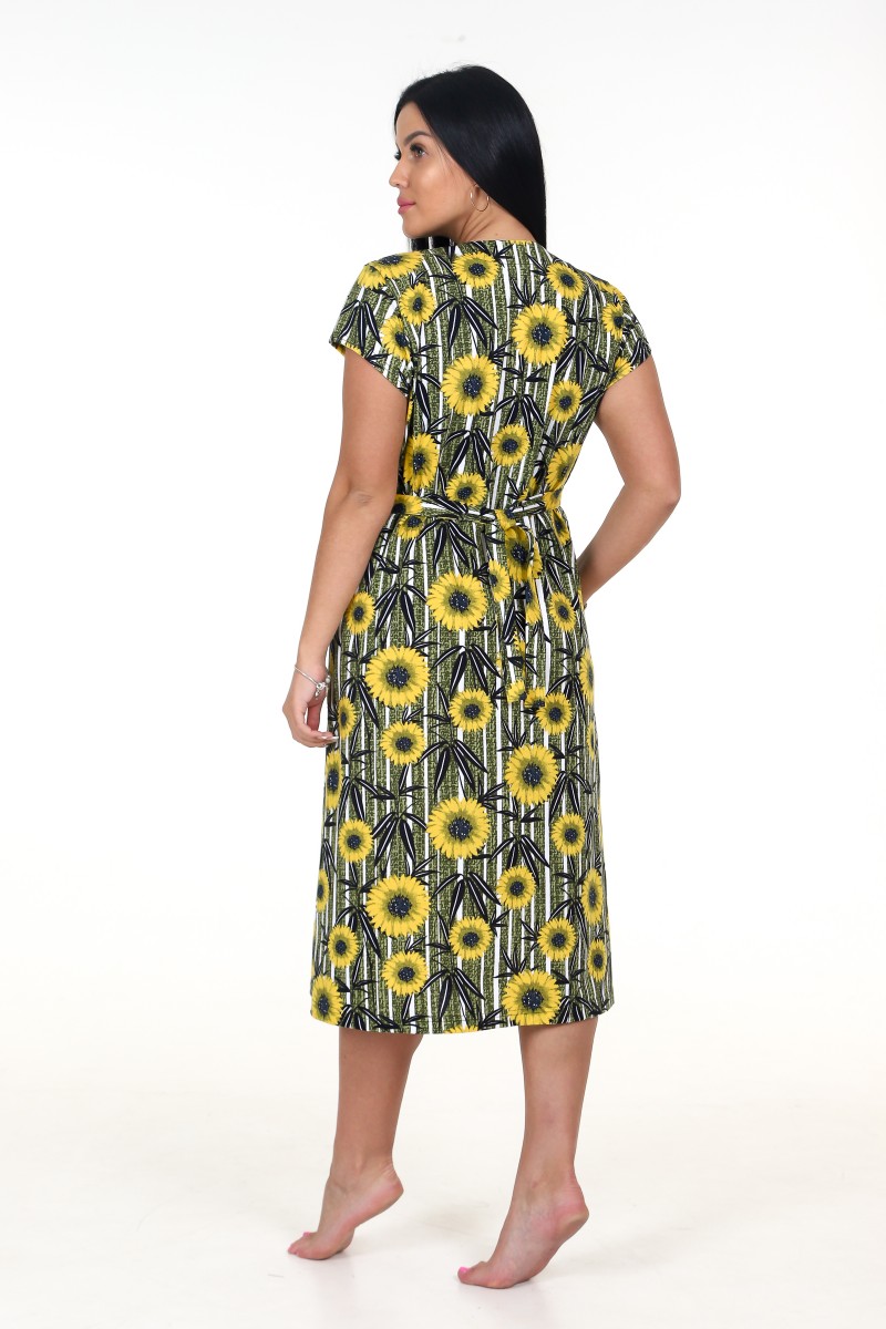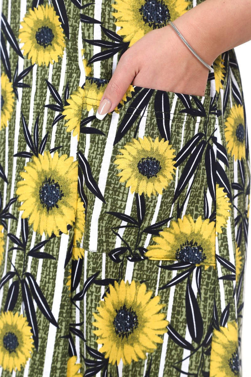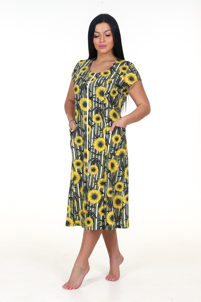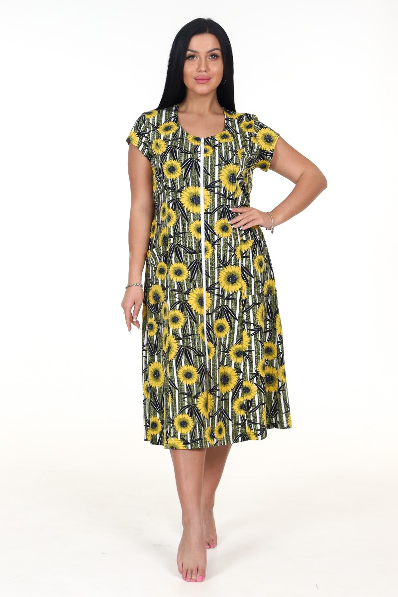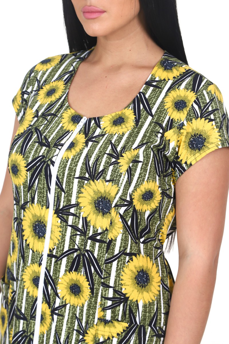 Халат женский ХК-548 кулирка (р-ры: 48-60) подсолнух на полосе хаки