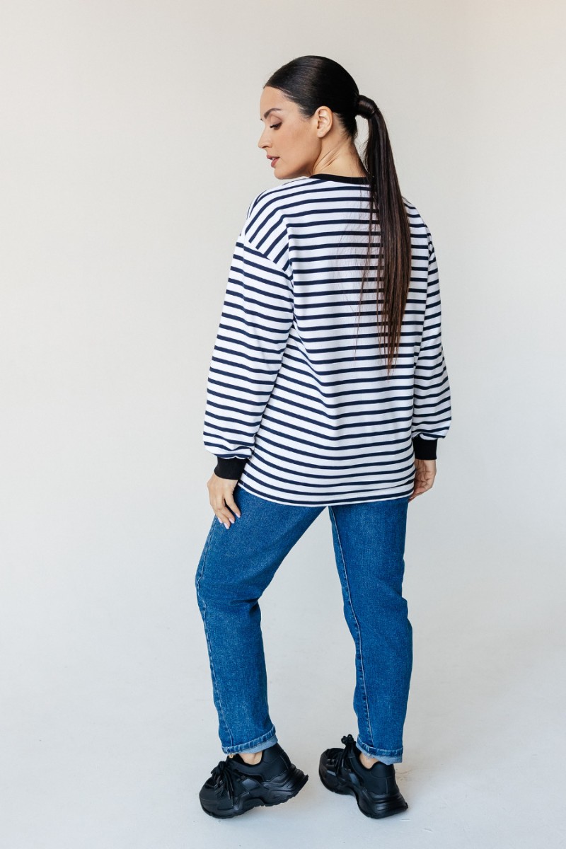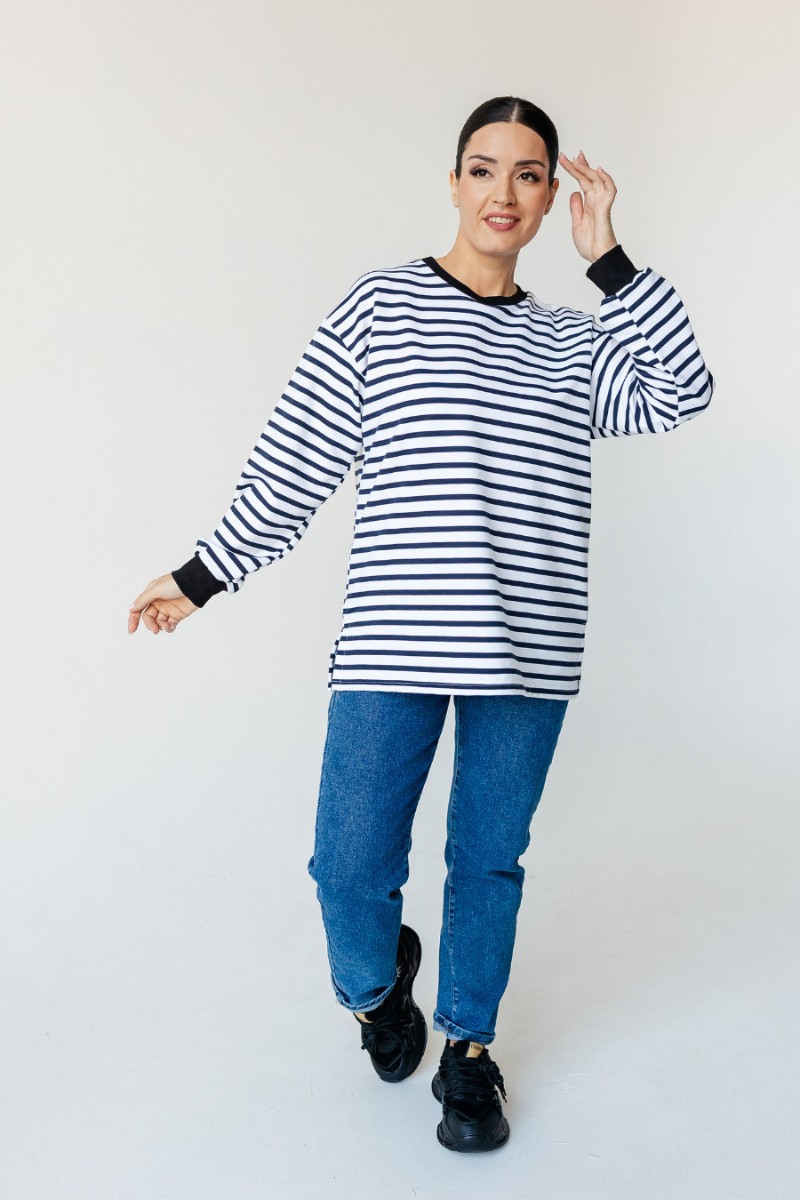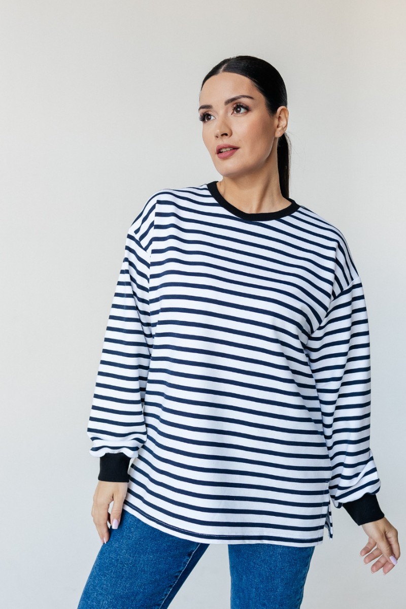 Представляем Вашему вниманию стильный женский свитшот. Модель имеет интересную расцветку, которая красиво смотрится и поднимает настроение. Изделие хорошо сидит на фигуре и подчеркивает её достоинства. В нём Вы будете чувствовать себя комфортно и уверенно.