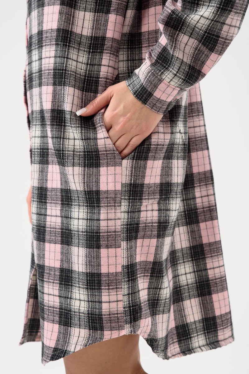 Представляем Вашему вниманию мягкий и уютный женский халат в клетку в клетку, сшитый из высококачественной фланели. Застёжка на пуговица, спинка длиннее переда. Модель обеспечит полную свободу движений и максимум комфорта в повседневной носке.