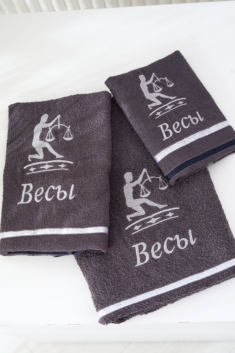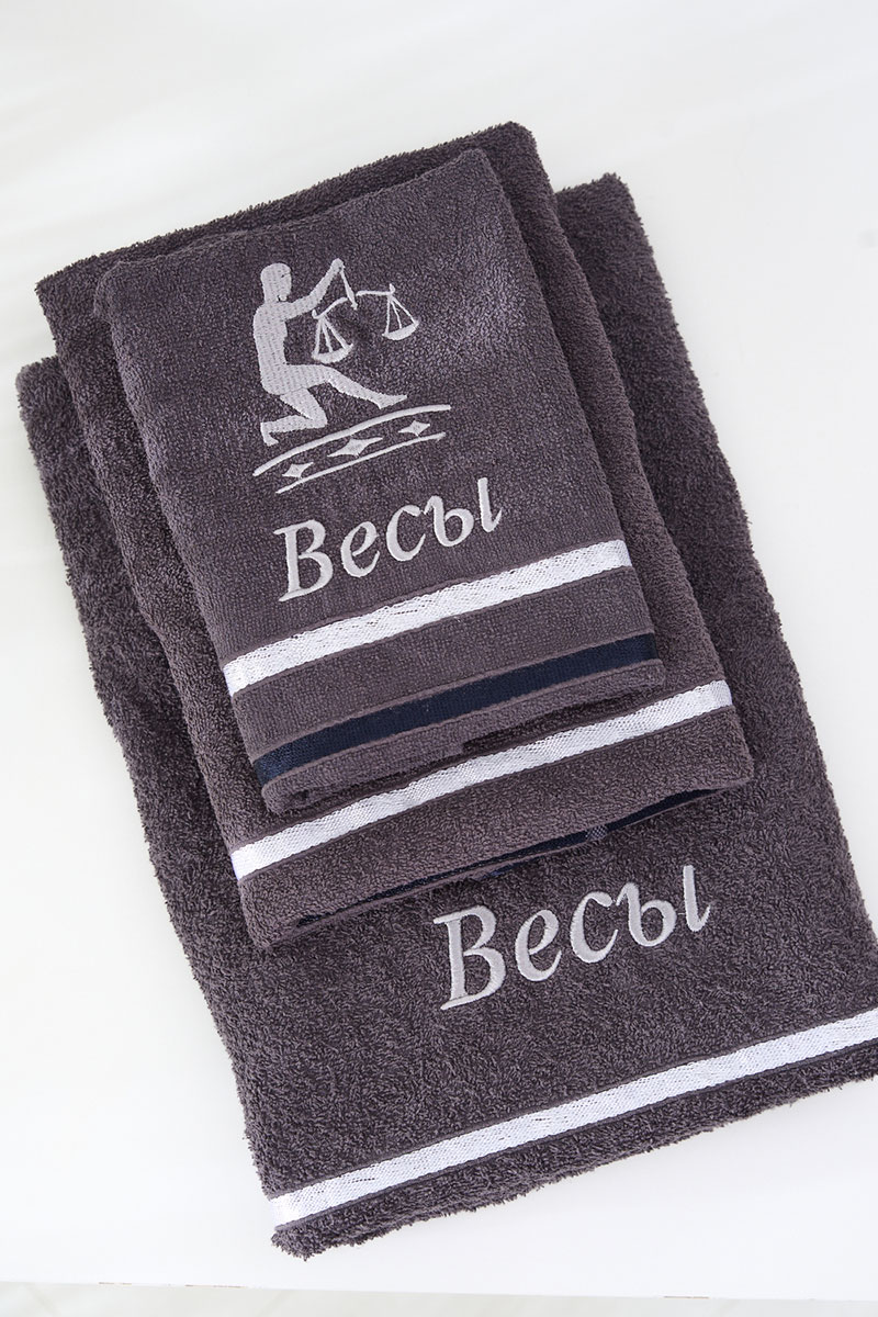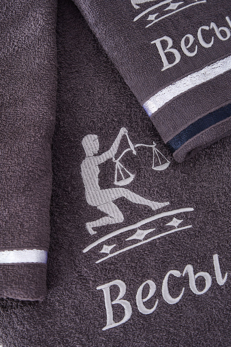 Полотенце махровое с вышивкой "Знаки зодиака" 14418/10 графит Весы