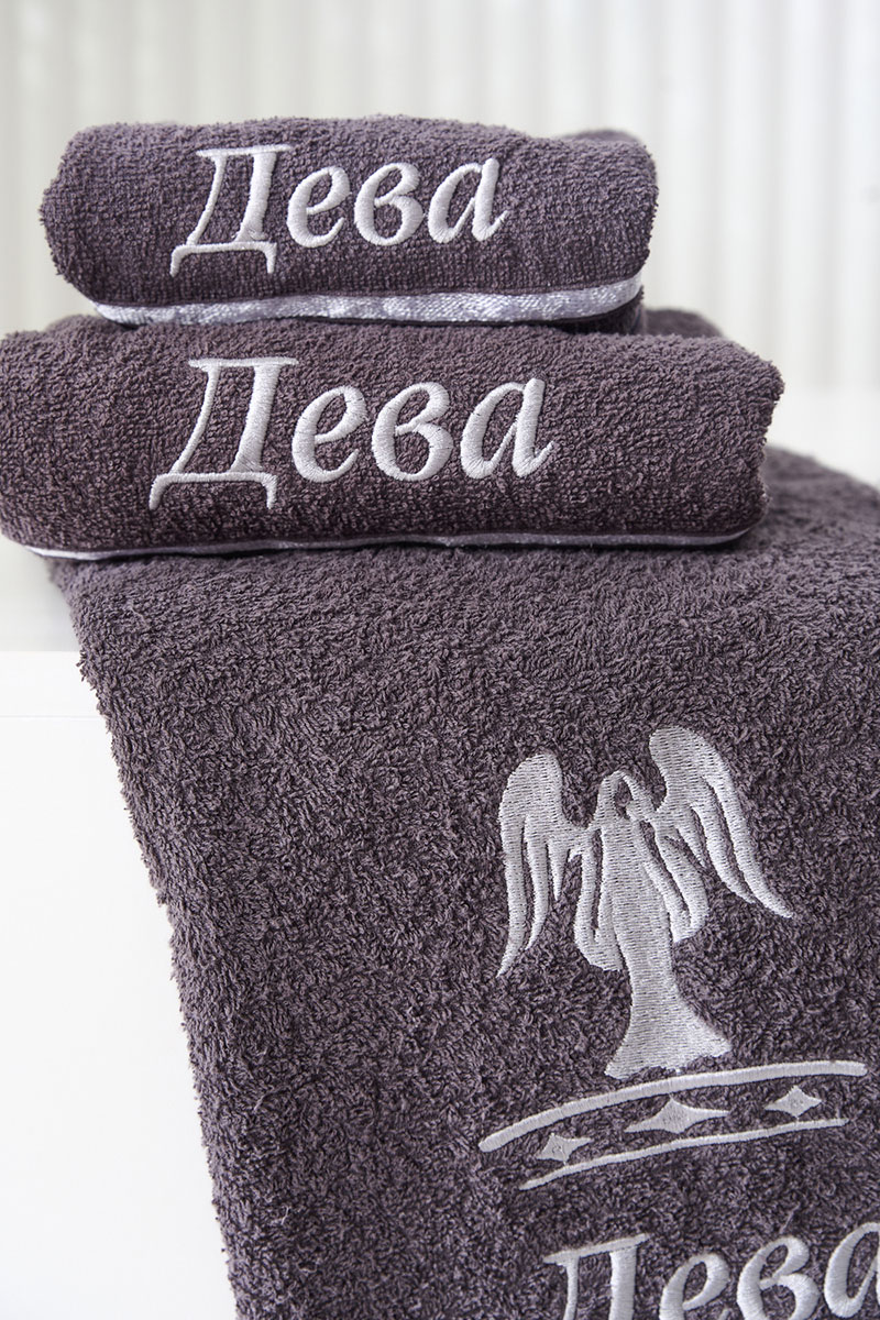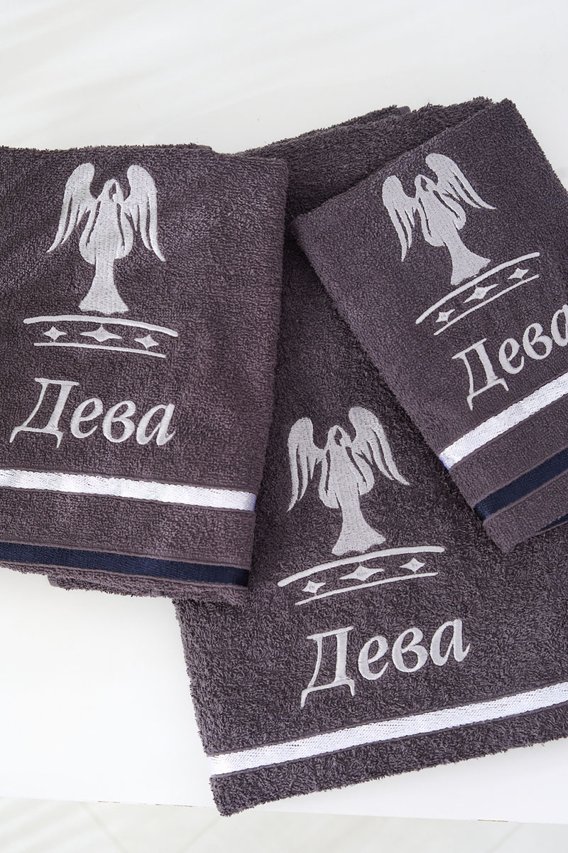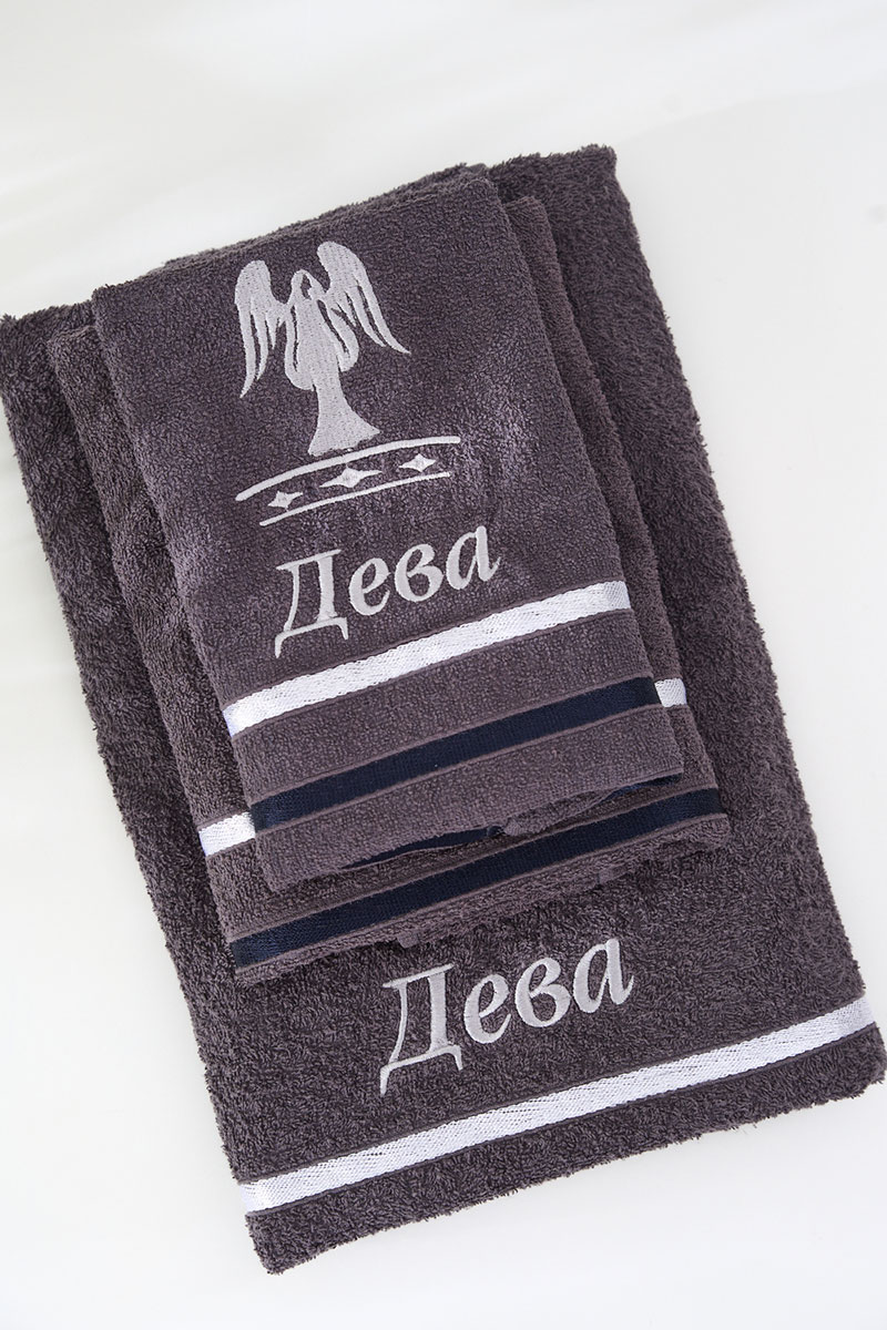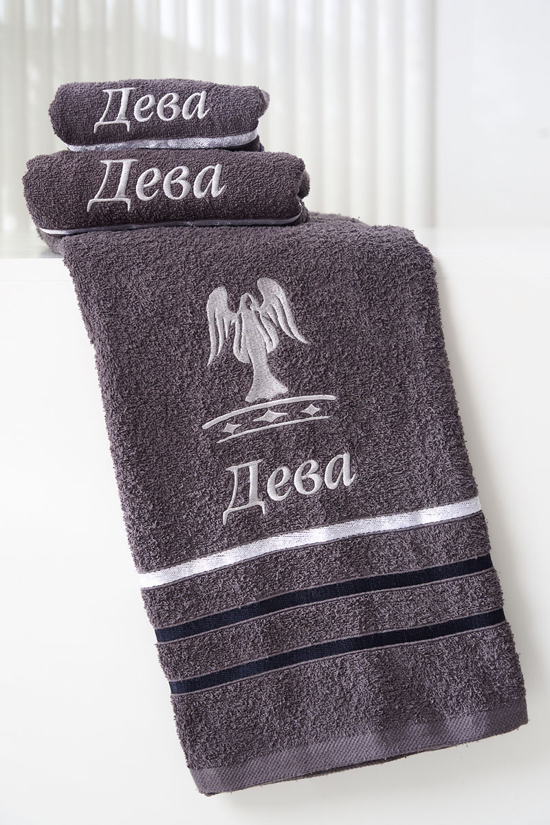 Полотенце махровое с вышивкой "Знаки зодиака" 14418/10 графит Дева