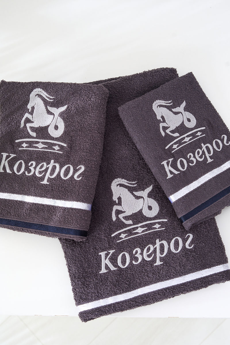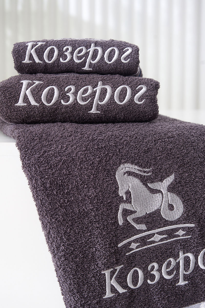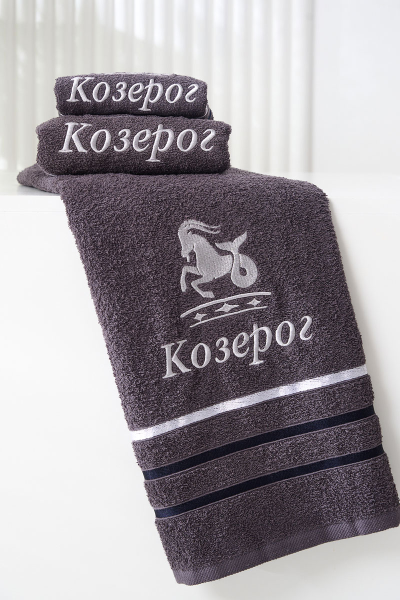 Полотенце махровое с вышивкой "Знаки зодиака" 14418/10 графит Козерог
