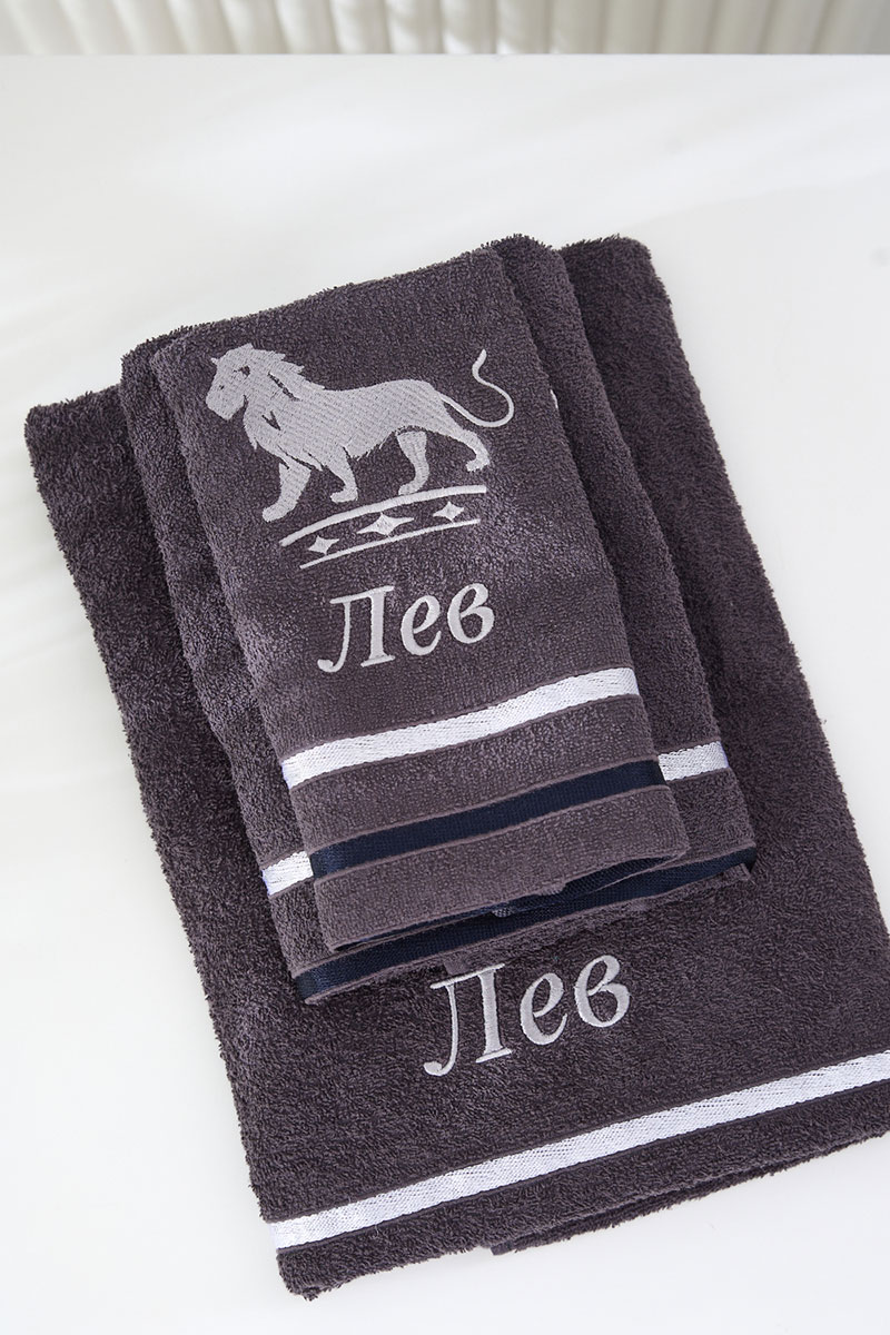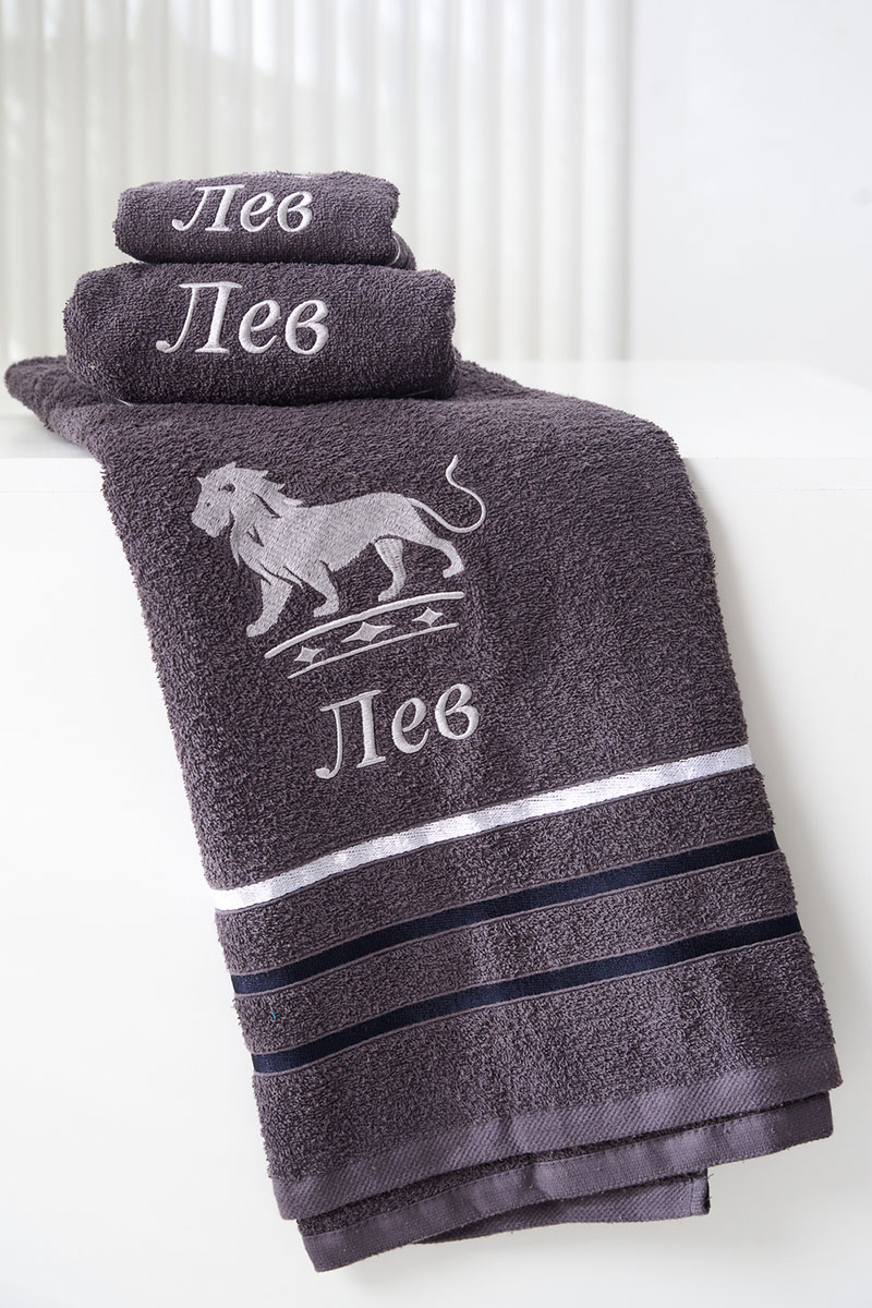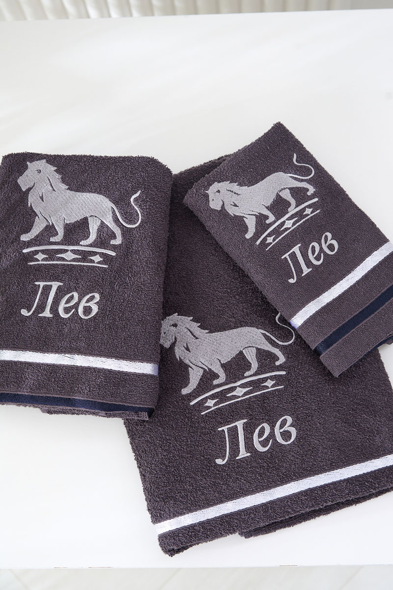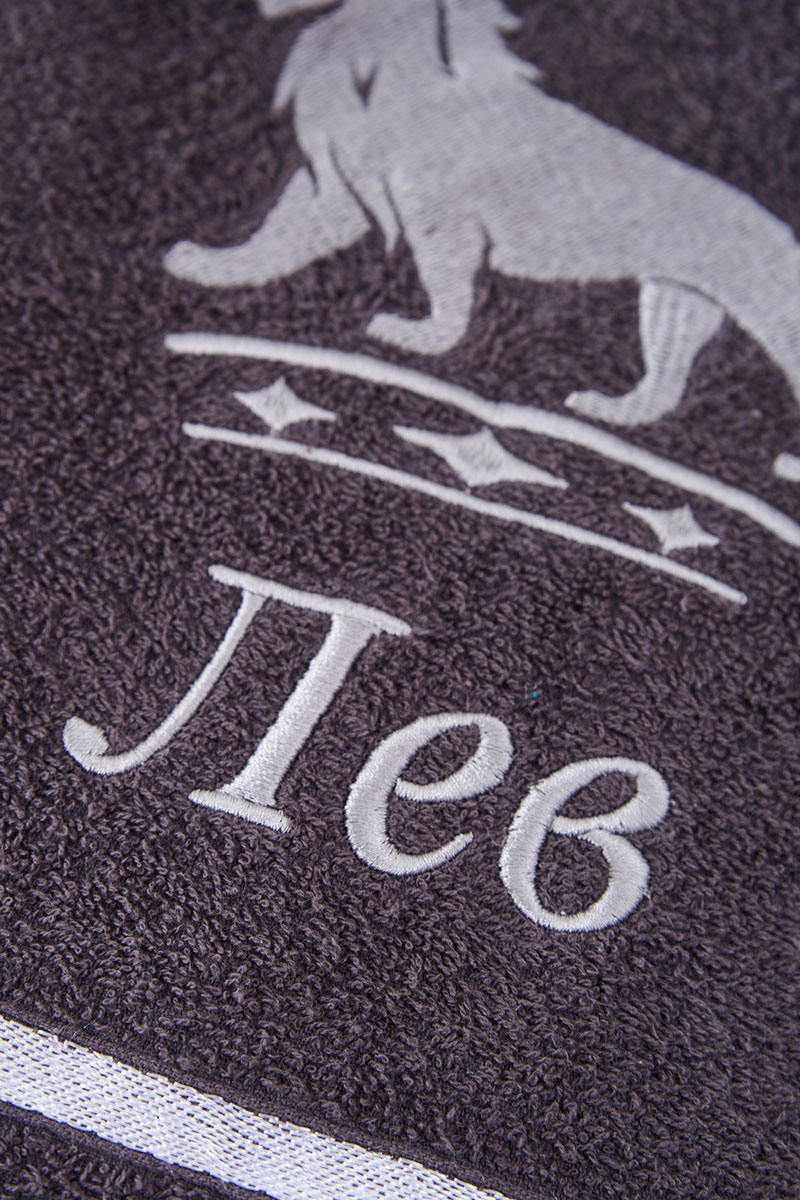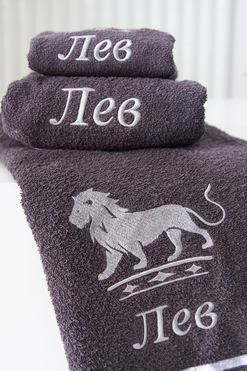 Полотенце махровое с вышивкой "Знаки зодиака" 14418/10 графит Лев