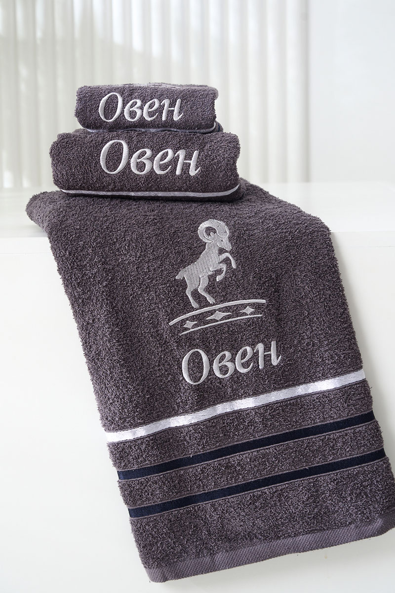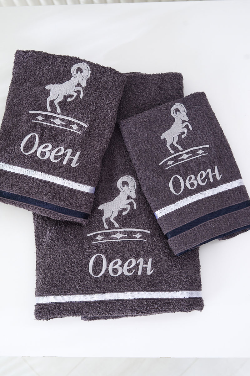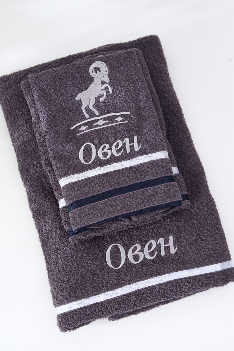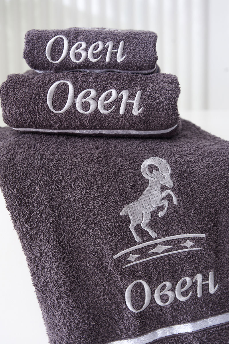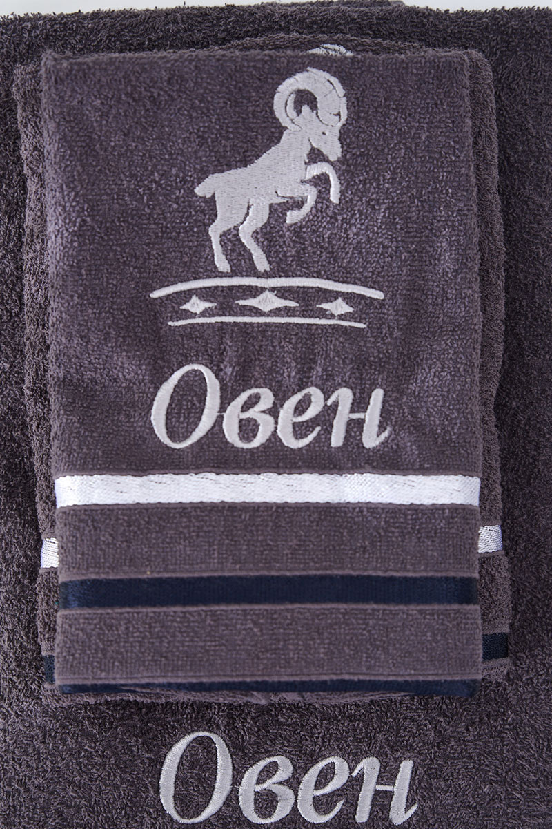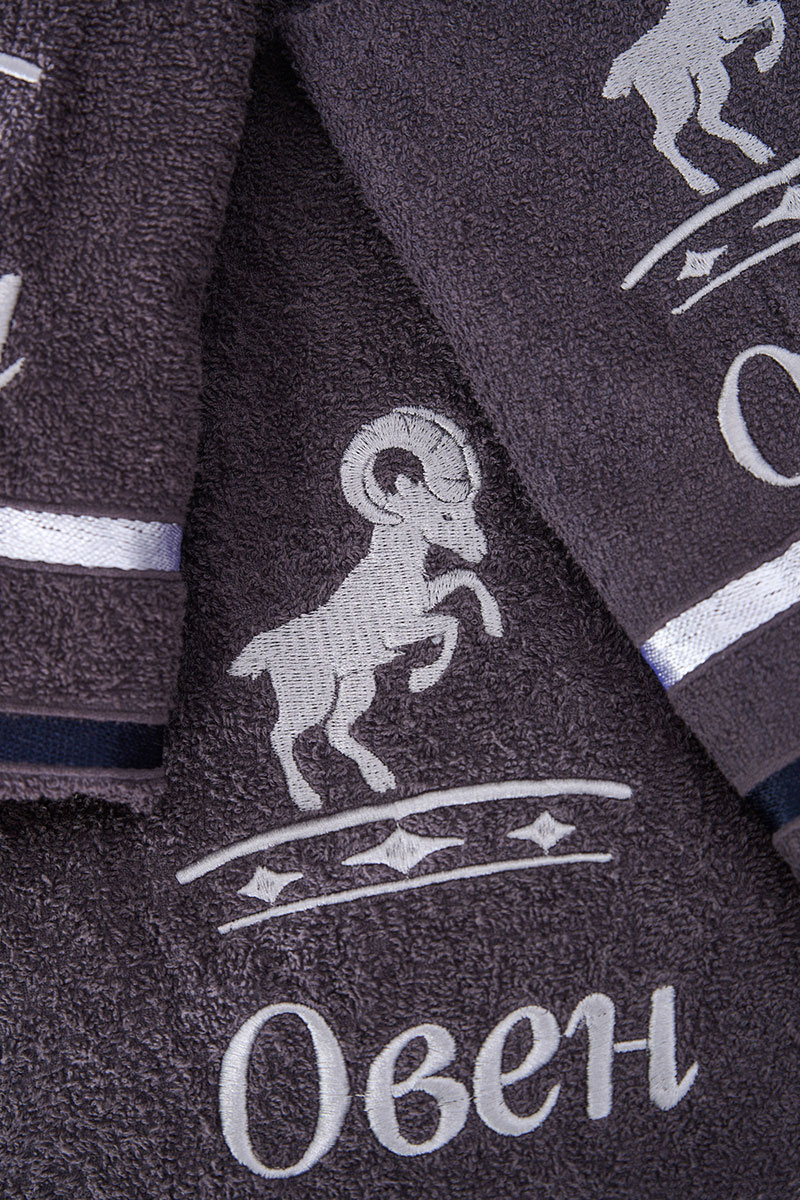Полотенце махровое с вышивкой "Знаки зодиака" 14418/10 графит Овен
