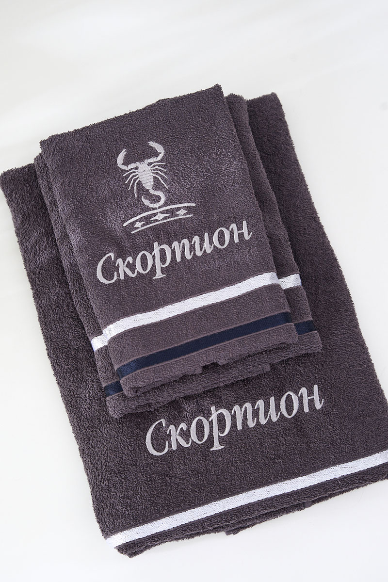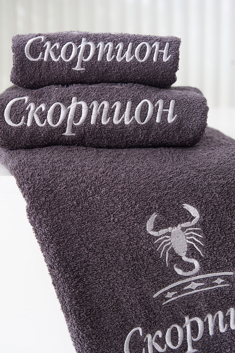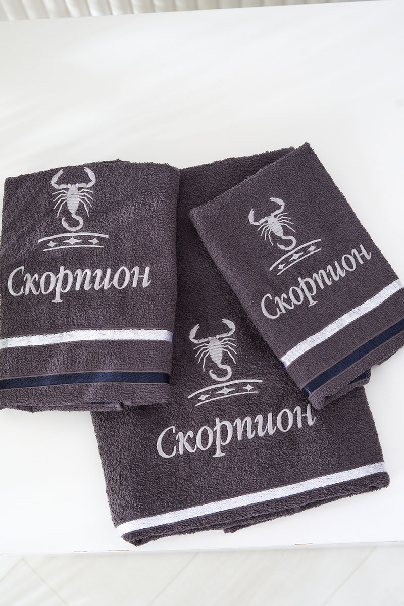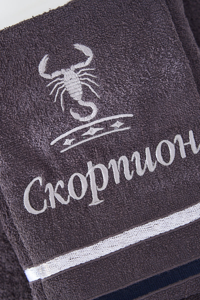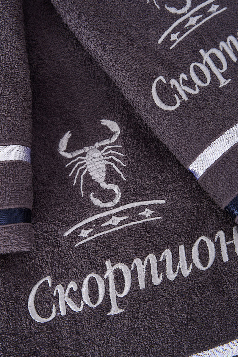 Полотенце махровое с вышивкой "Знаки зодиака" 14418/10 графит Скорпион