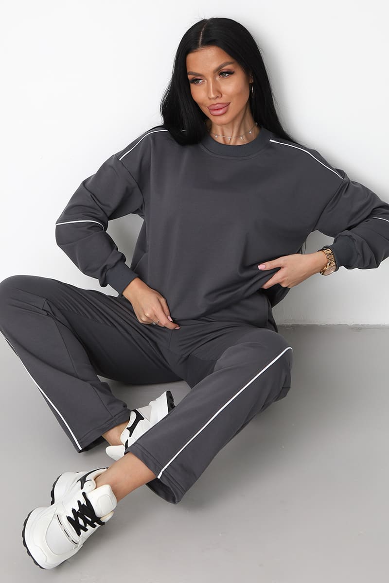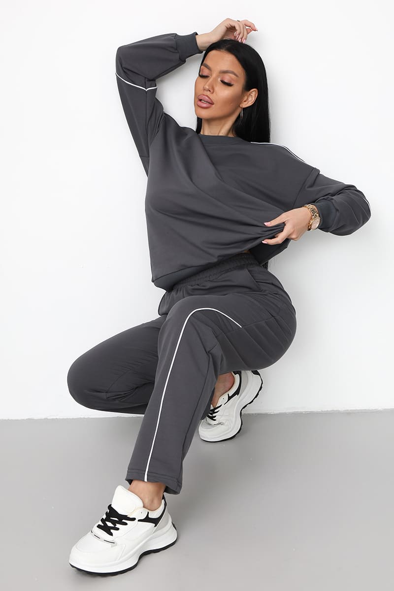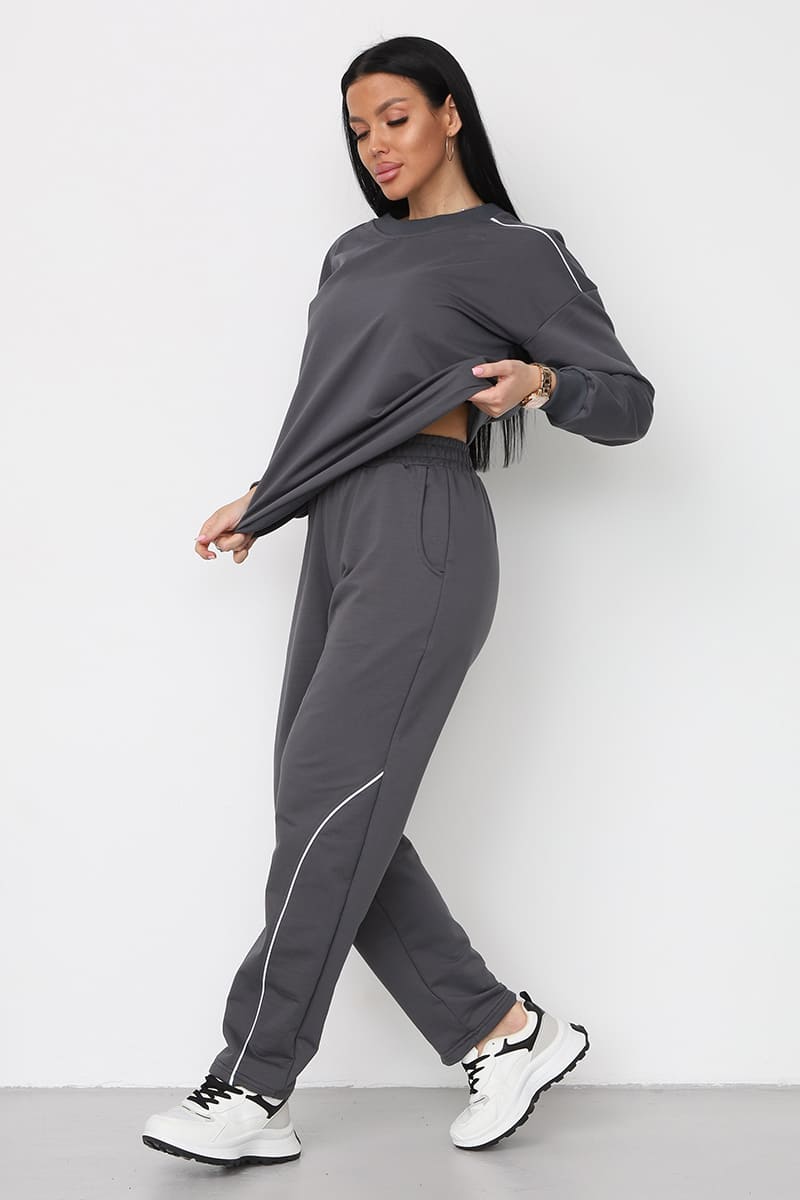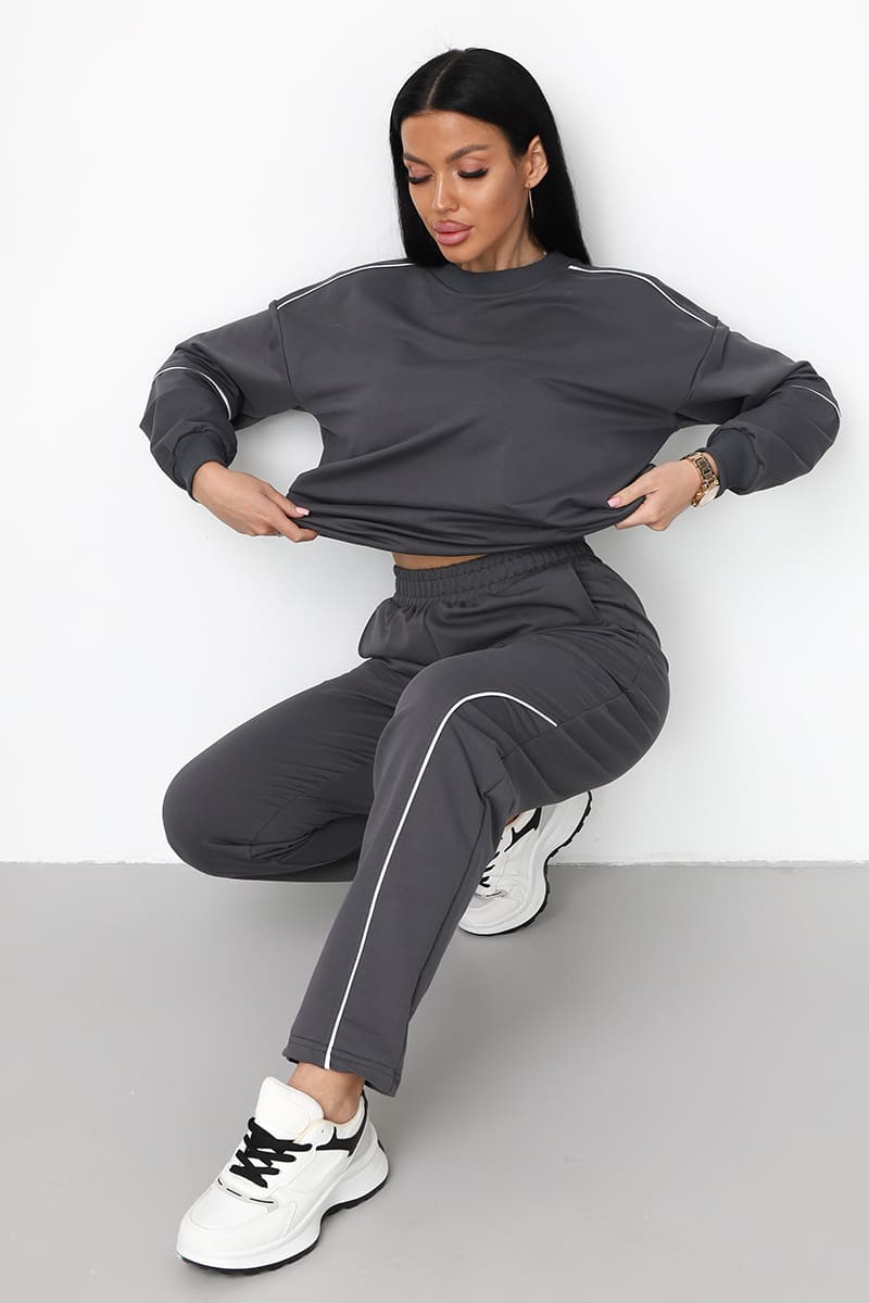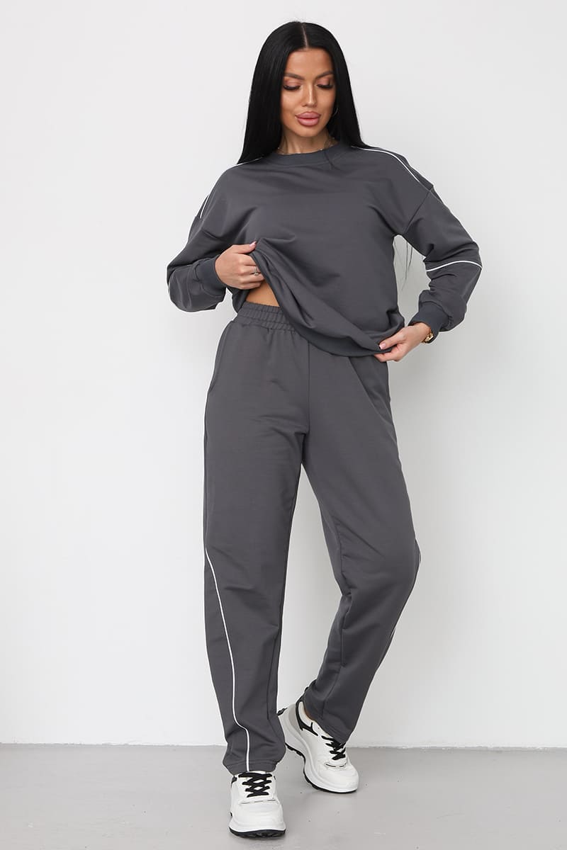 Представляем Вашему внимаю стильный женский костюм из футера: брюки и толстовка. В составе — 75% хлопка, 20% полиэстера и 5% лайкры. Это сочетание обеспечивает комфорт, идеальную посадку и долговечность. Эластичная лайкра дарит свободу движений и сохраняет форму даже после множества стирок. Костюм идеально подходит для активного повседневного образа, работы, прогулок и спорта. Он легко сочетается с кроссовками и аксессуарами, создавая современный и выразительный стиль.
