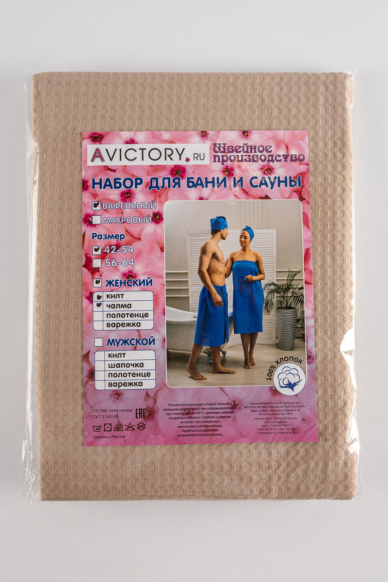 Набор для сауны 029255 вафельное полотно 2 предмета бежевый