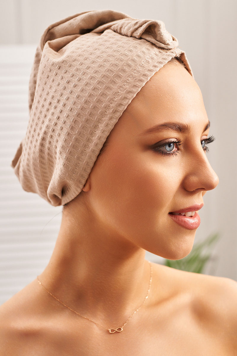 Вафельный текстиль из чистого хлопка плотностью 240 г/м² отлично впитывает влагу. Вафельные килты на резинке лучше впитывают влагу, чем махровые халаты или полотенца, и при этом они компактнее и занимают меньше места. Килт размером 90х150 см идеально садится по фигуре. Комфортная накидка и шапочка станут незаменимыми спутниками в бане, сауне, спа-салоне и душевой спортивного клуба.