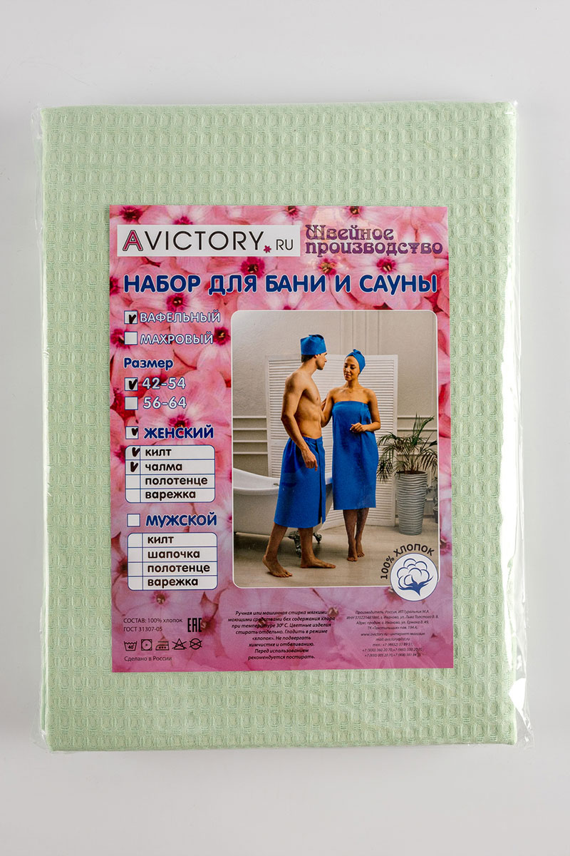 Набор для сауны 029255 вафельное полотно 2 предмета мята