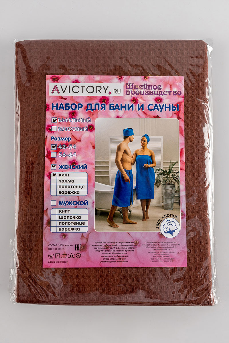 Набор для сауны 029255 вафельное полотно 2 предмета шоколад