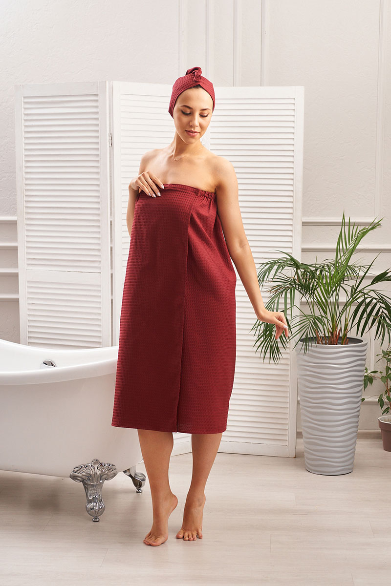 Набор для сауны 029255 вафельное полотно 2 предмета бордо