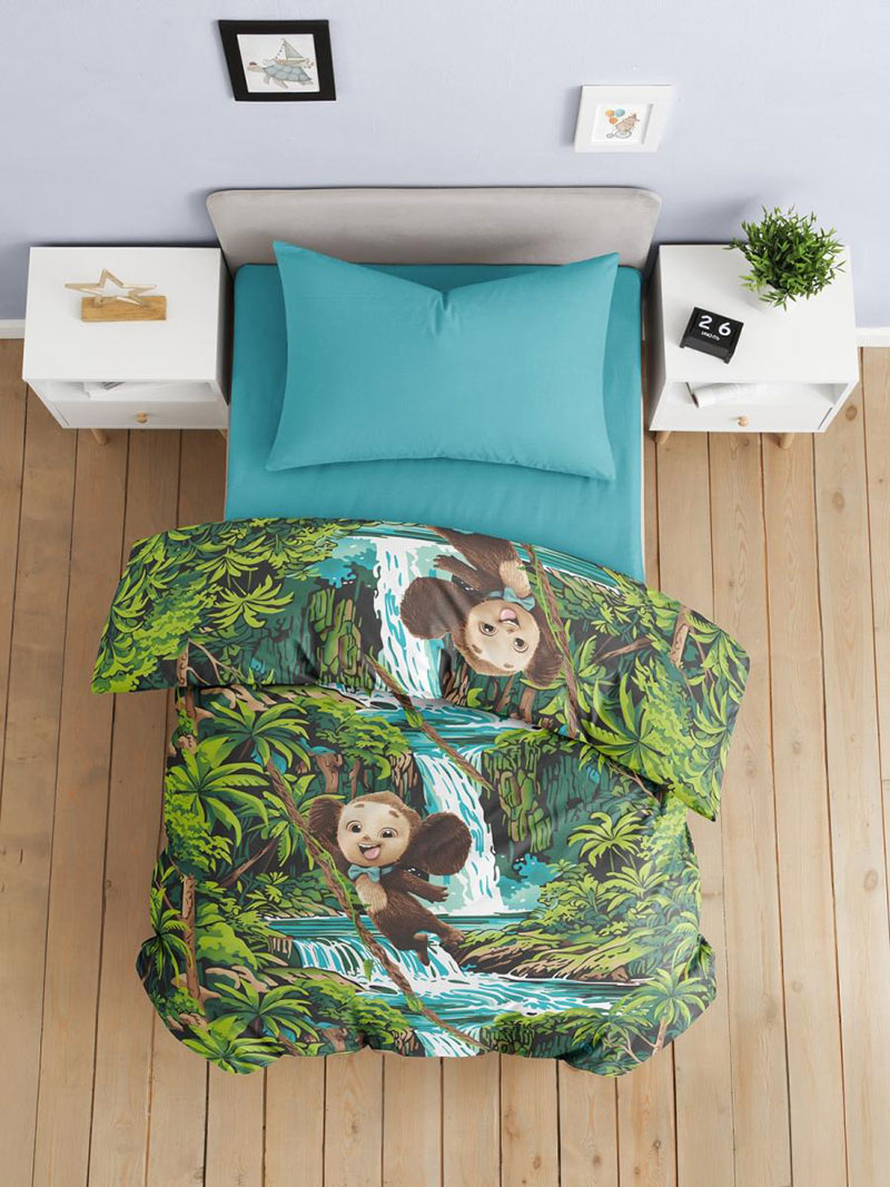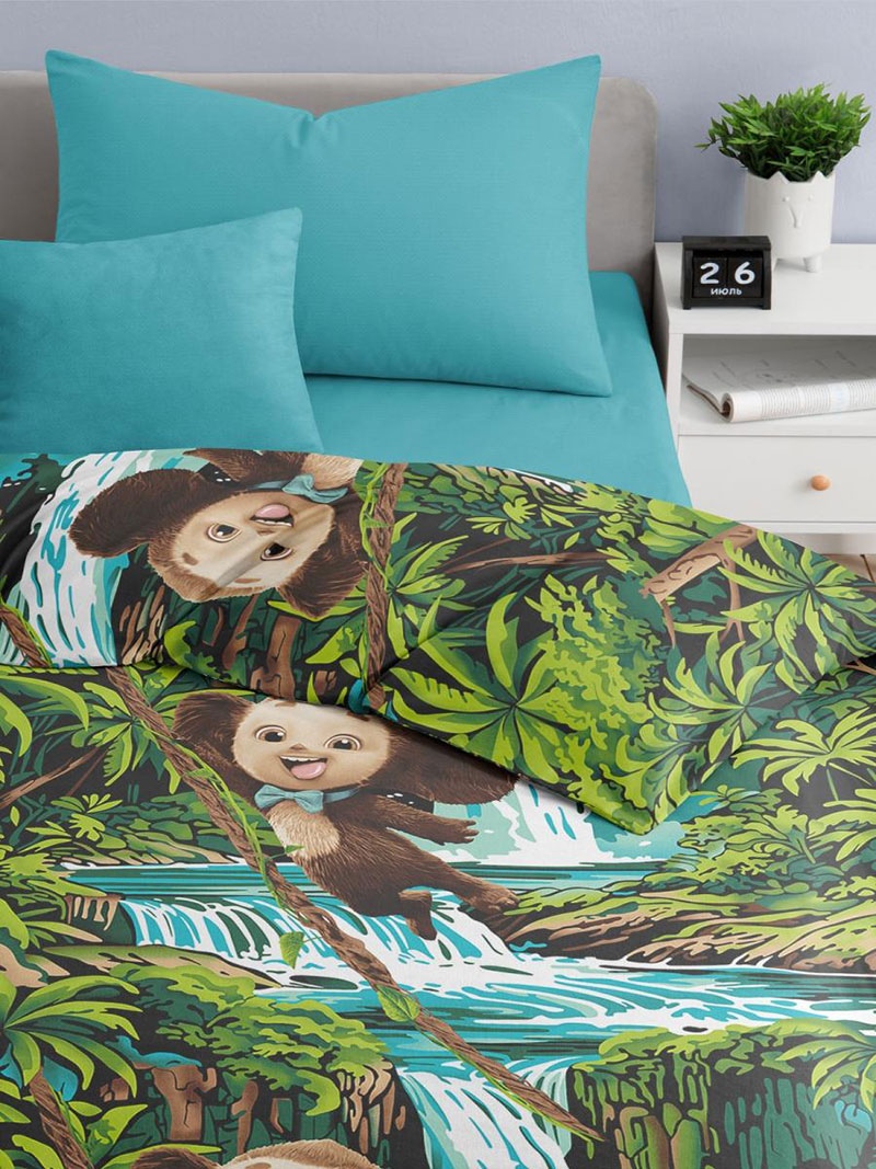 Детское постельное белье бязь "Чебурашка в джунглях"