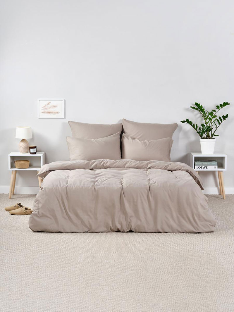 Перед первым использованием рекомендуется стирка. Перед стиркой пододеяльник и наволочки необходимо вывернуть наизнанку, простыню поместить внутрь пододеяльника. Стирать руками или в стиральной машине при температуре 30 градусов в режиме бережной стирки мягкими моющими средствами, не содержащими отбеливателей. Гладить с изнанки при средней температуре.