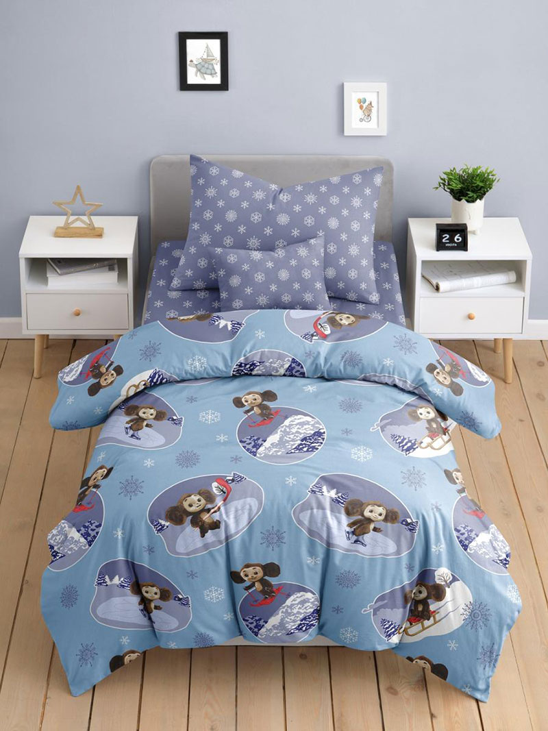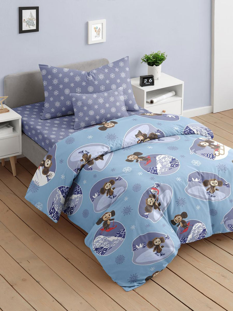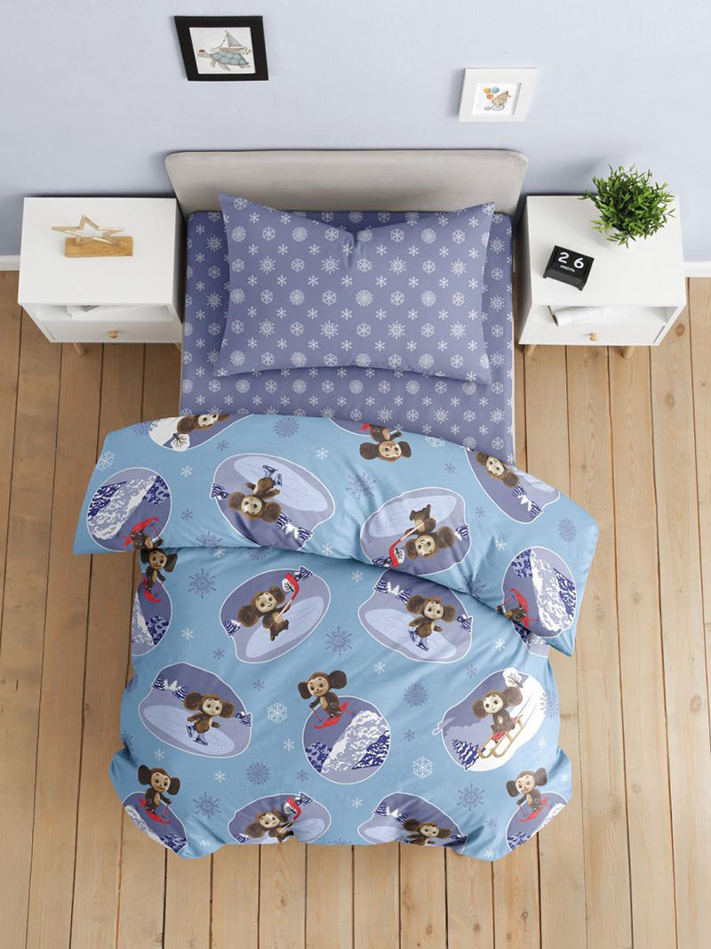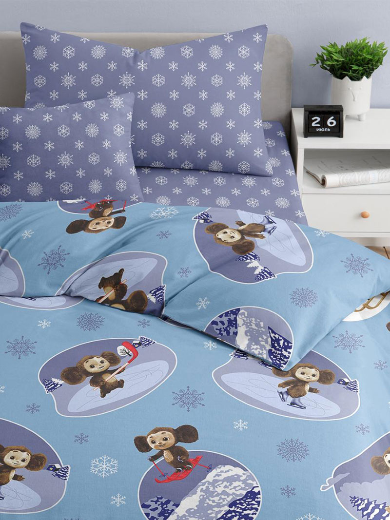 Детское постельное белье поплин "Чебурашка Зимние игры"