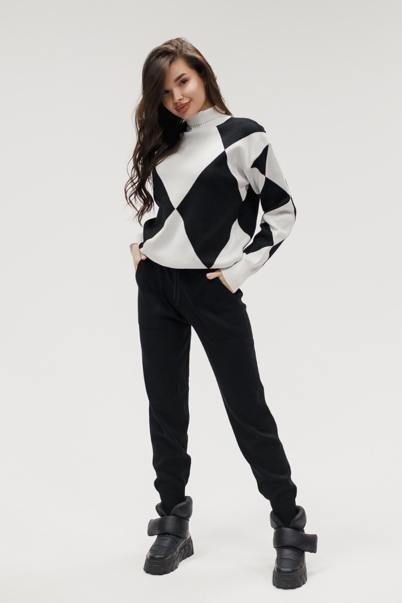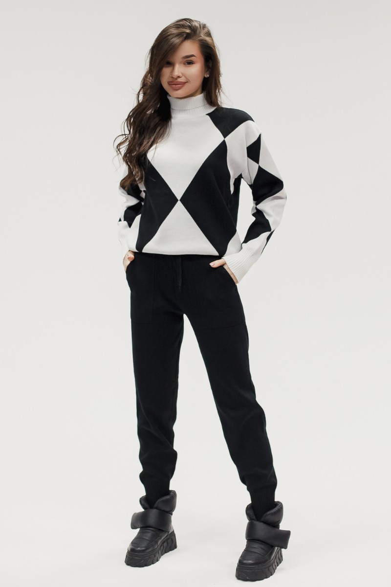 Костюм двойка женский №057897 вязаный трикотаж (р-ры: 40-46) черный