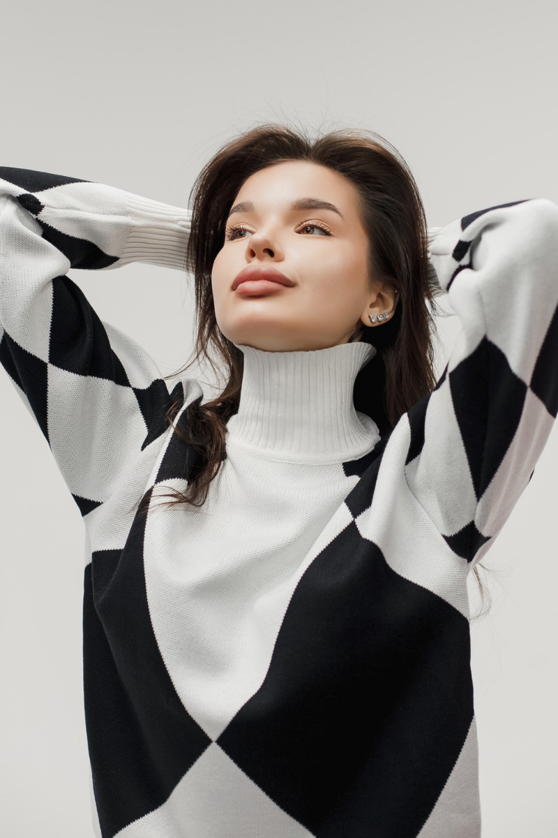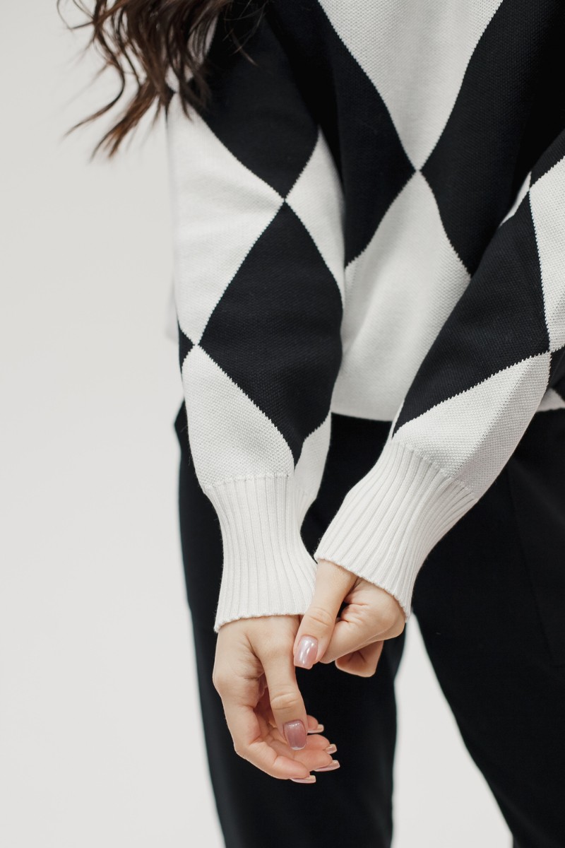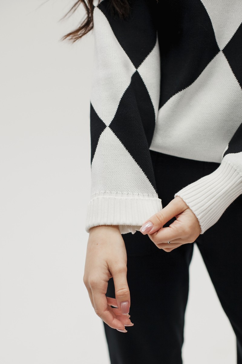 Представляем Вашему вниманию ттёплый женский вязаный костюм — гармоничный комплект из свитера и брюк, выполненный из плотной, мягкой и эластичной пряжи (состав: 30% хлопок, 40% вискоза, 30% полиэстер), который надёжно сохраняет тепло и при этом приятно прилегает к телу. Свитер свободногос аккуратной воротниковой стойкой средней высоты визуально стройнит и обеспечивает дополнительную защиту от холода, манжеты и нижняя кромка обработаны резинкой для лучшей посадки и сохранения формы. Плечи оформлены со скосом или лёгким «полупритёком» для комфортной посадки на фигуры разных типов; брюки средней посадки с эластичным поясом и внутренней мягкой тесьмой или шнурком обеспечивают индивидуальную регулировку, прямой или слегка зауженный книзу силуэт свободно сидит по бедру и книзу, благодаря эластичности материала изделие «тянется» и адаптируется под параметры от 40 до 46 размера и комфортно смотрится на росте до 160 см, при этом посадка и длина оптимизированы под невысокий рост — брюки не требуют сильной подшивки, а длина пуловера рассчитана так, чтобы сочетаться с верхней одеждой; в дизайне предусмотрены функциональные детали: скрытые боковые или накладные карманы в брюках, аккуратные декоративные швы или узорная вязка на передней части пуловера, что добавляет текстуре и визуального интереса, при этом декоративность не мешает повседневному использованию; палитра — нейтральные базовые оттенки (беж, серый, графит, тёмно-синий) и несколько насыщенных цветовых акцентов (бордо, изумруд, горчичный), которые легко сочетаются с верхней одеждой и аксессуарами; материал и плотная вязка делают костюм универсальным для осенне-зимнего периода и прохладной весны — он отлично подойдёт как для прогулок и поездок, так и для уютных домашних вечеров или неофициальных встреч; уход: рекомендована деликатная стирка руками или в машине на щадящем режиме при температуре не выше 30°C, сушить в расправленном виде на горизонтальной поверхности, не отбеливать, при необходимости возможна бережная химчистка; благодаря продуманной посадке и использованию качественной пряжи комплект сохраняет форму и внешний вид даже при регулярной носке, подчёркивает женственность без лишней вычурности и станет практичным элементом гардероба тех, кто ценит комфорт, тепло и стиль.