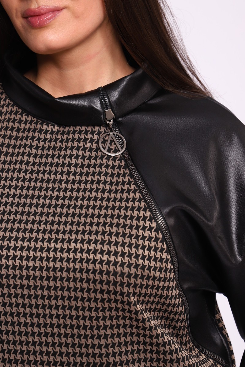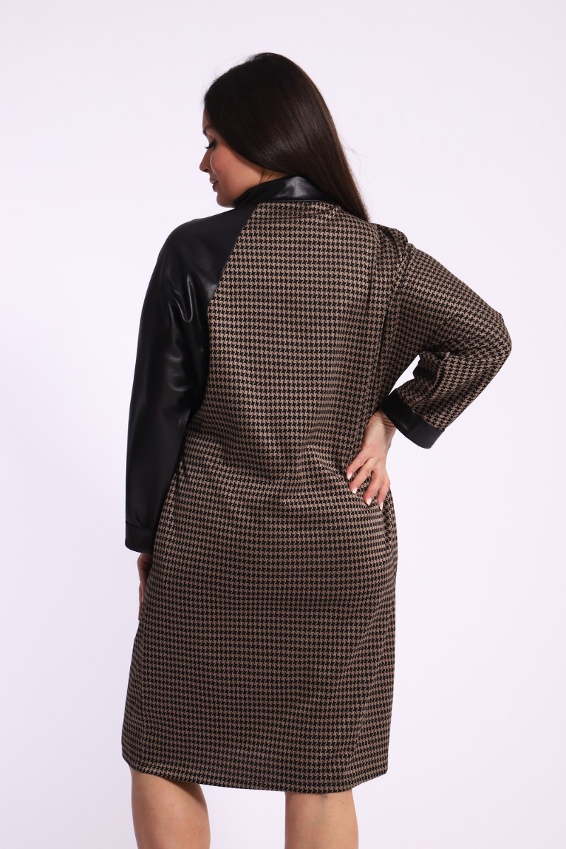 Представляем Вашему вниманию женское платье со спущенным рукавом и модным принтом "гусиные лапки". Это платье станет вашей надежной основой для создания элегантного и современного образа. Его уникальный дизайн прекрасно сочетается с отделкой из качественной эко-кожи, добавляя нотки роскоши и утонченности.