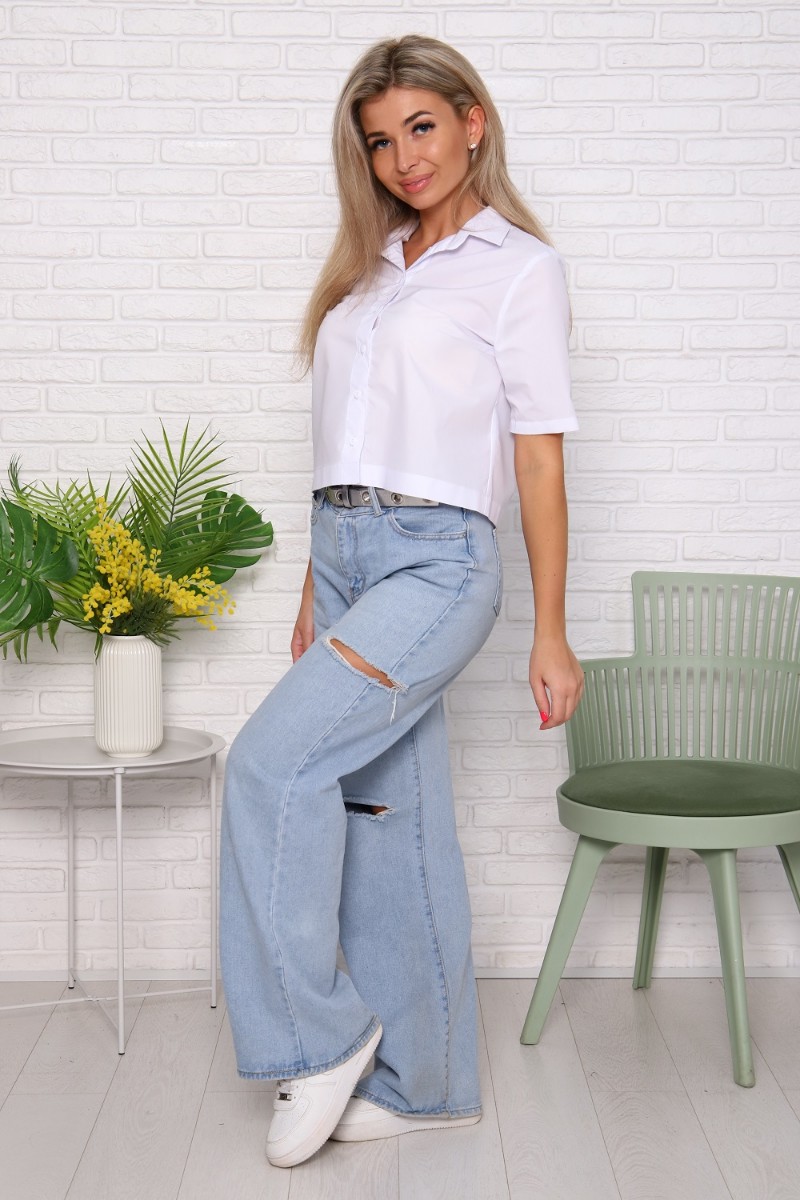 Представляем Вашему вниманию женскую укороченную тунику-рубашку с короткими рукавами. Стильный, модный силуэт рубашки подчёркивает достоинства фигуры, визуально удлиняет ноги. Рубашка из смешанной ткани мало мнётся и легко гладится. Сочетается практически с любыми брюками, шортами, юбками.
