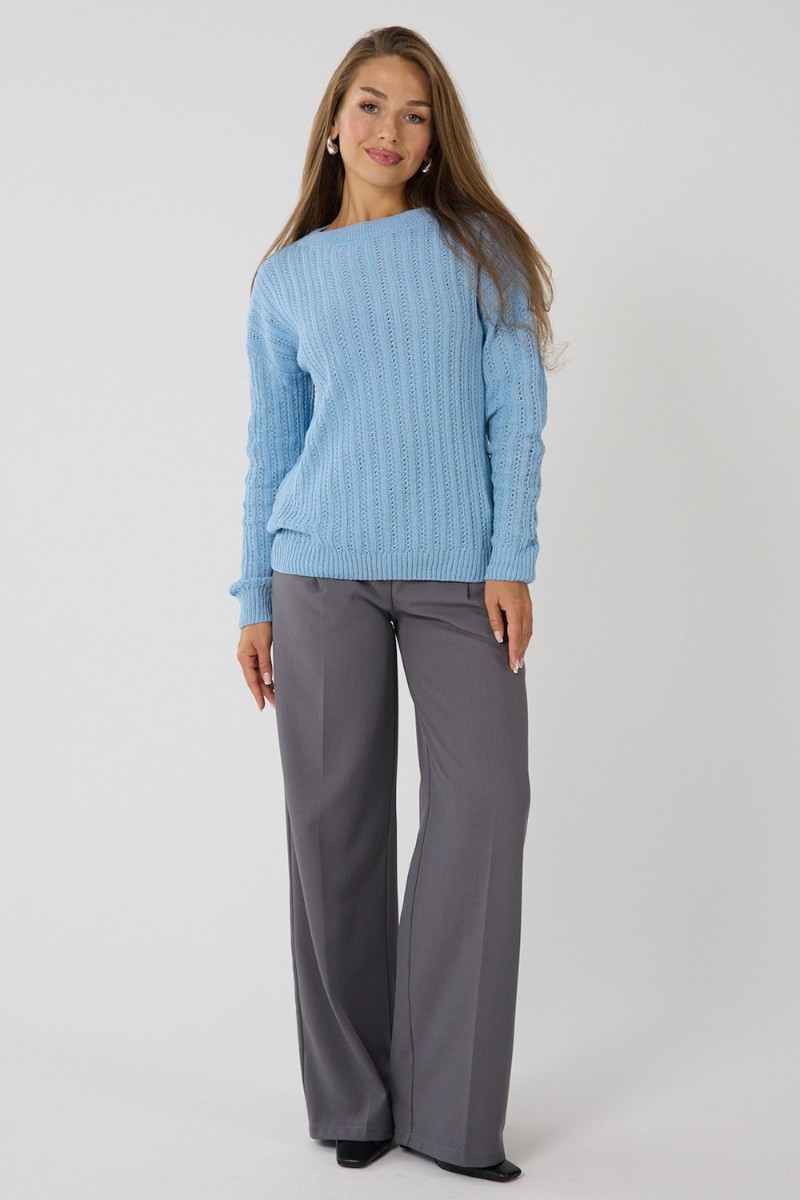 Джемпер женский "Бэлла" вязаный трикотаж (р-ры: 42-60) голубой