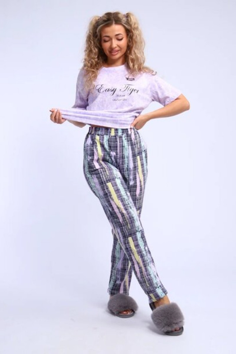 Представляем Вашему вниманию женские брюки из кулирки. Комфортные брюки для домашних дел, а так же подходят для сна. Интересный принт и простота пошива делают женские брюки отличным вариантом для подарка. Материал: кулирка (хлопок 100%). Карманы: 2 потайных.
