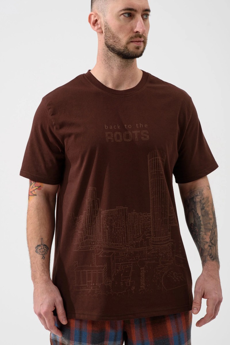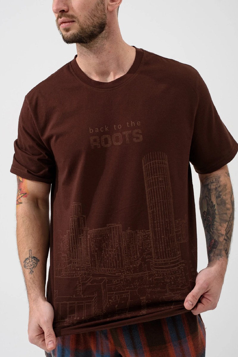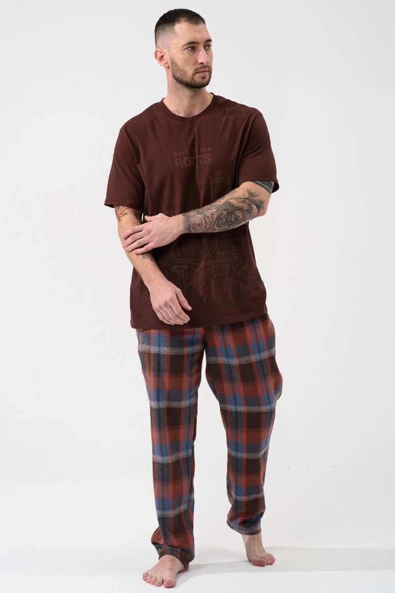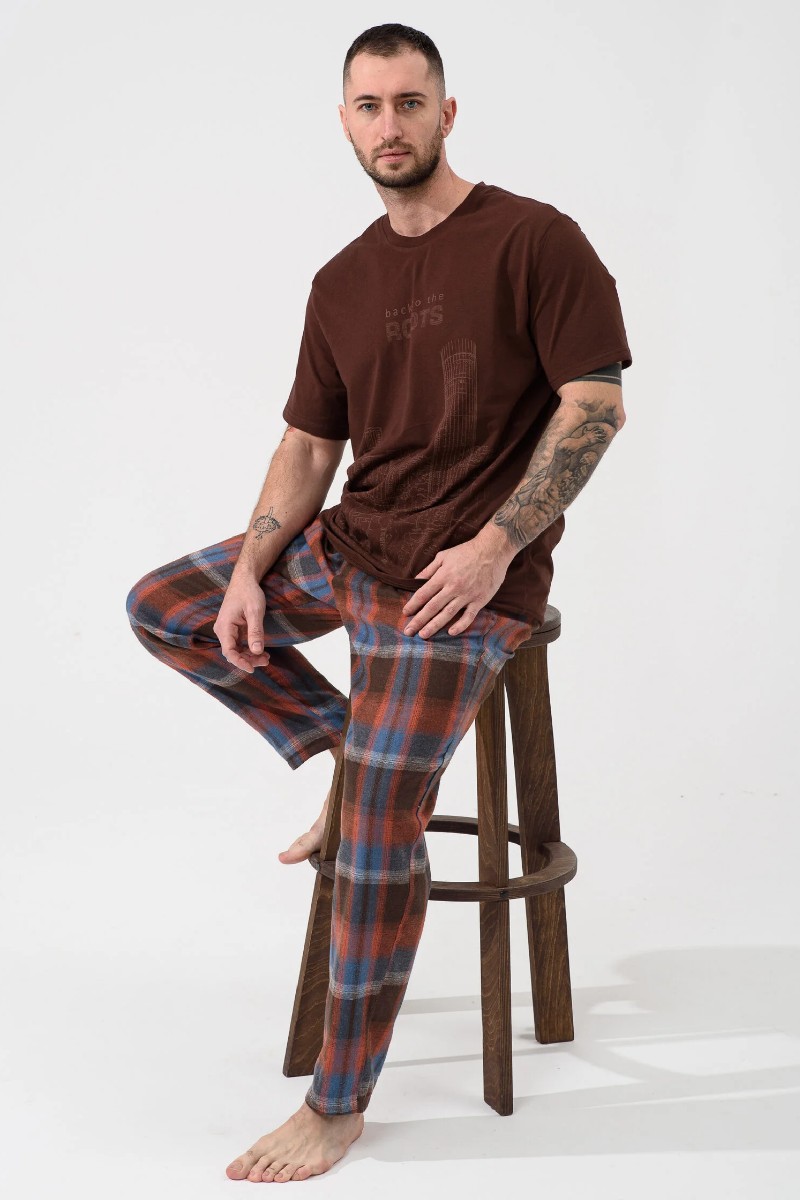 Пижама мужская "Огни ЕКБ" 2431-К/Ф кулирка-фланель (р-ры: 48-58) коричневый