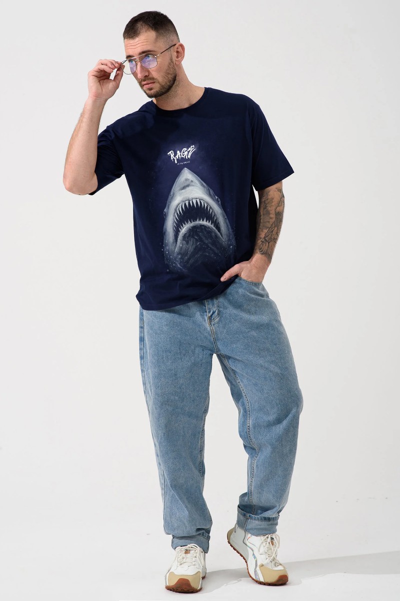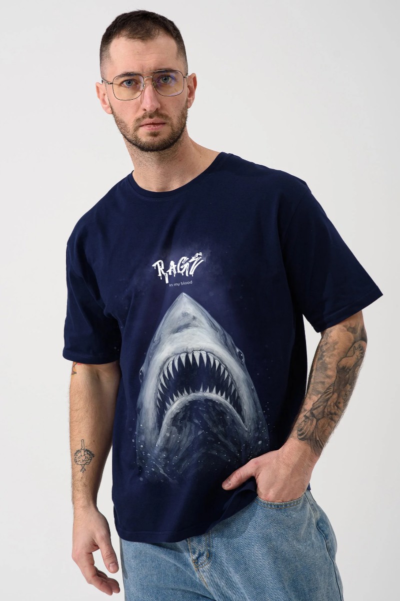 Футболка мужская "Акула" 2437-К кулирка (р-ры: 48-58) синий