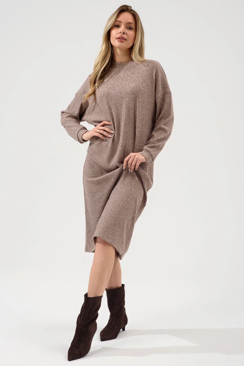 Платье женское "Ангора" 2432-Л лапша ангора (р-ры: 46-56) капучино