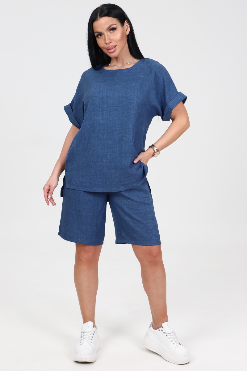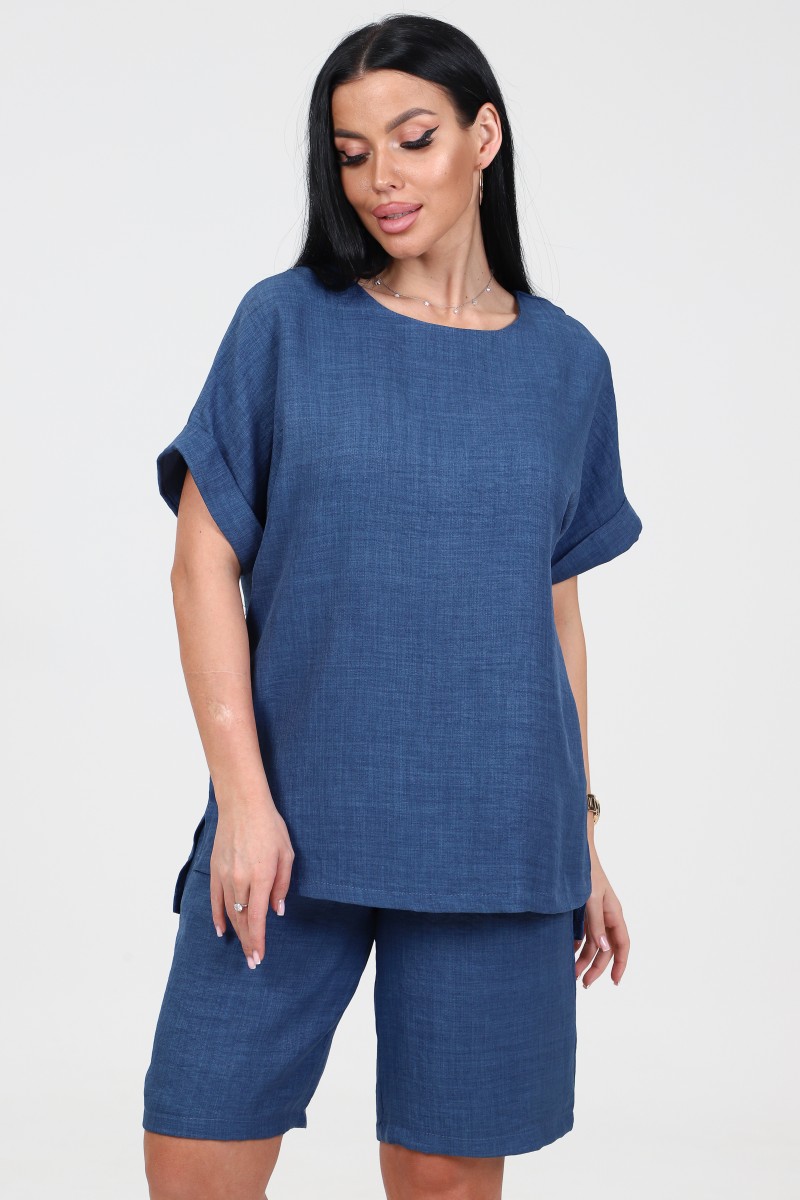Костюм двойка женский КЛ-2639 "Шик" имитация льна (р-ры: 46-58) джинс темн.