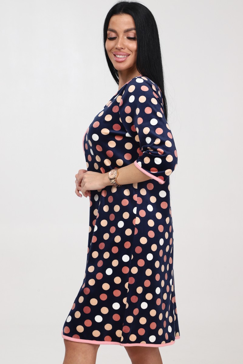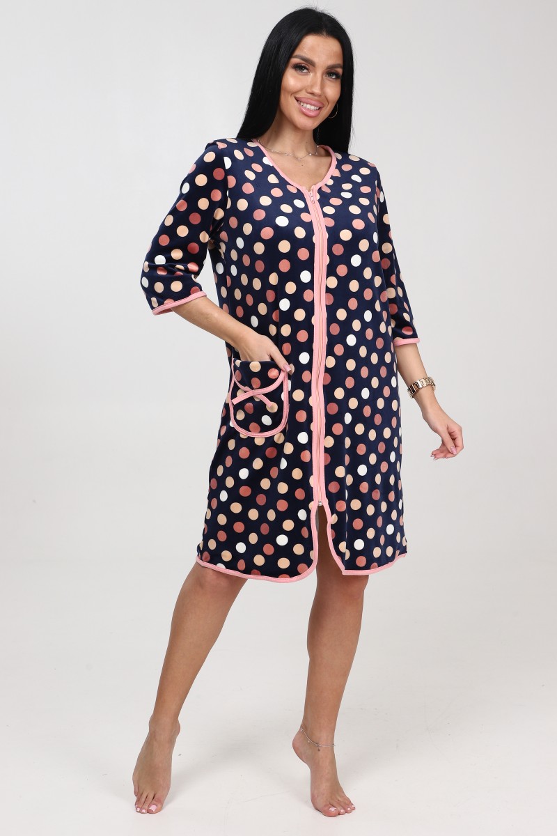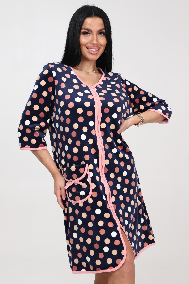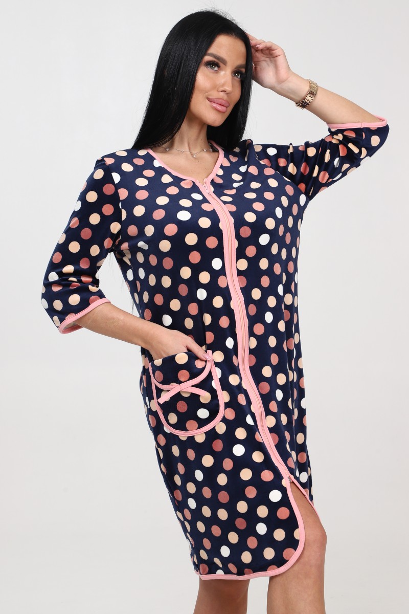 Халат женский "Молодежный" ХВ-2301 велюр (р-ры: 44-56) персик.горох на т.син