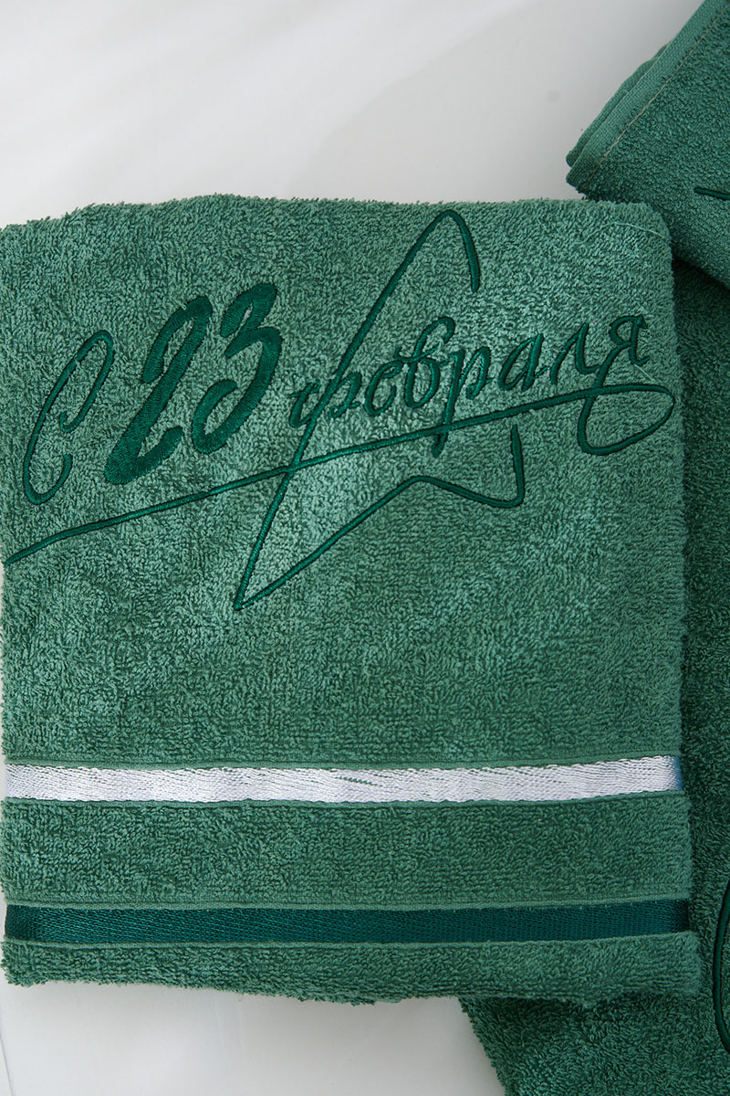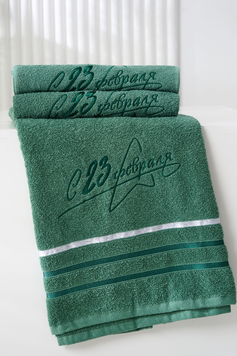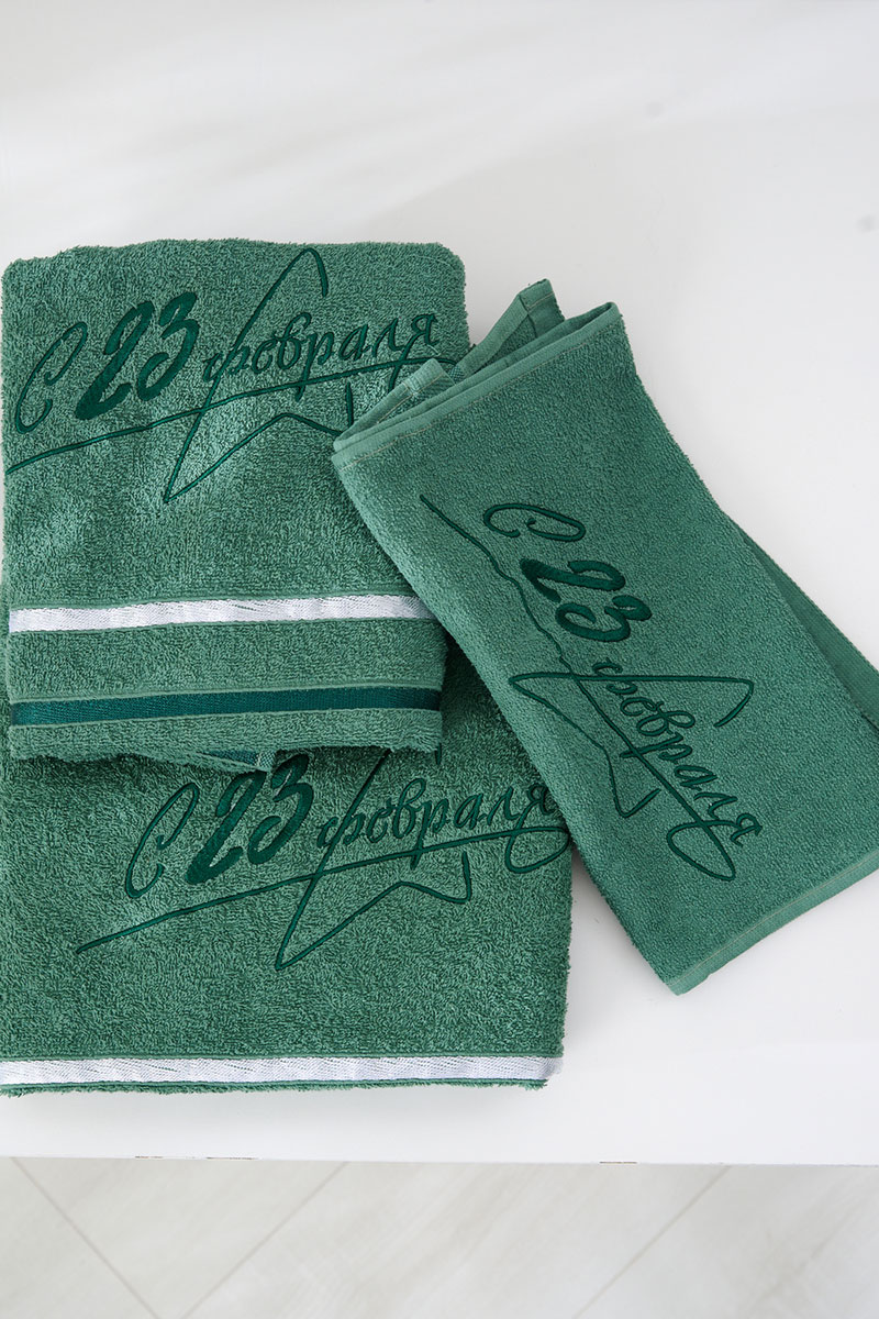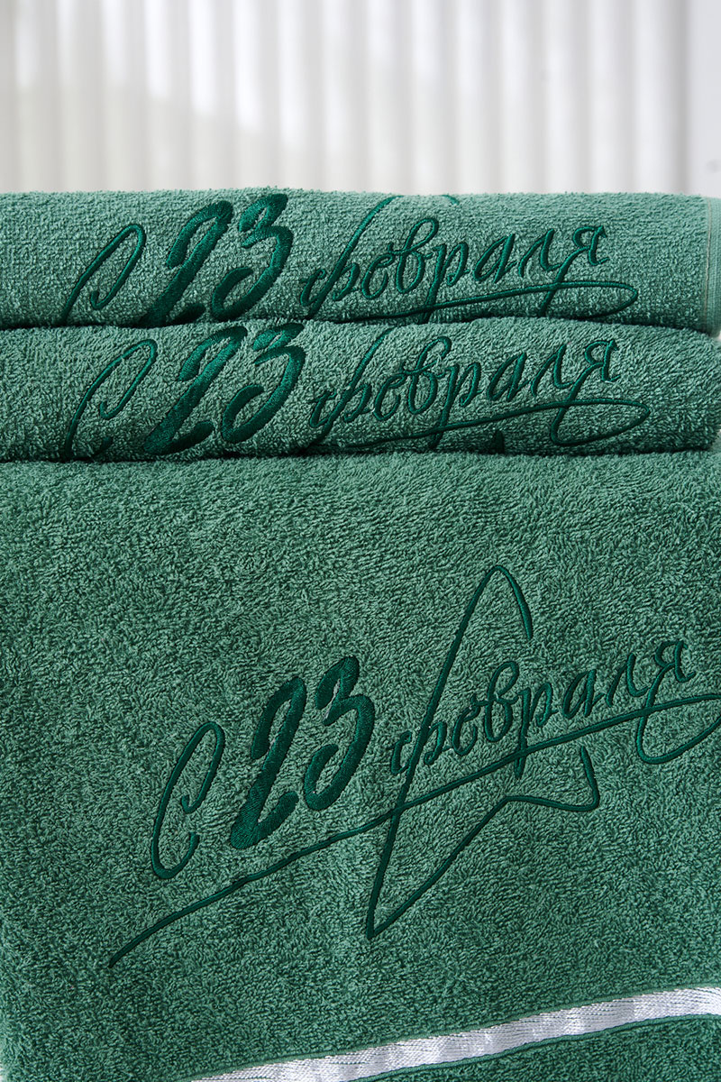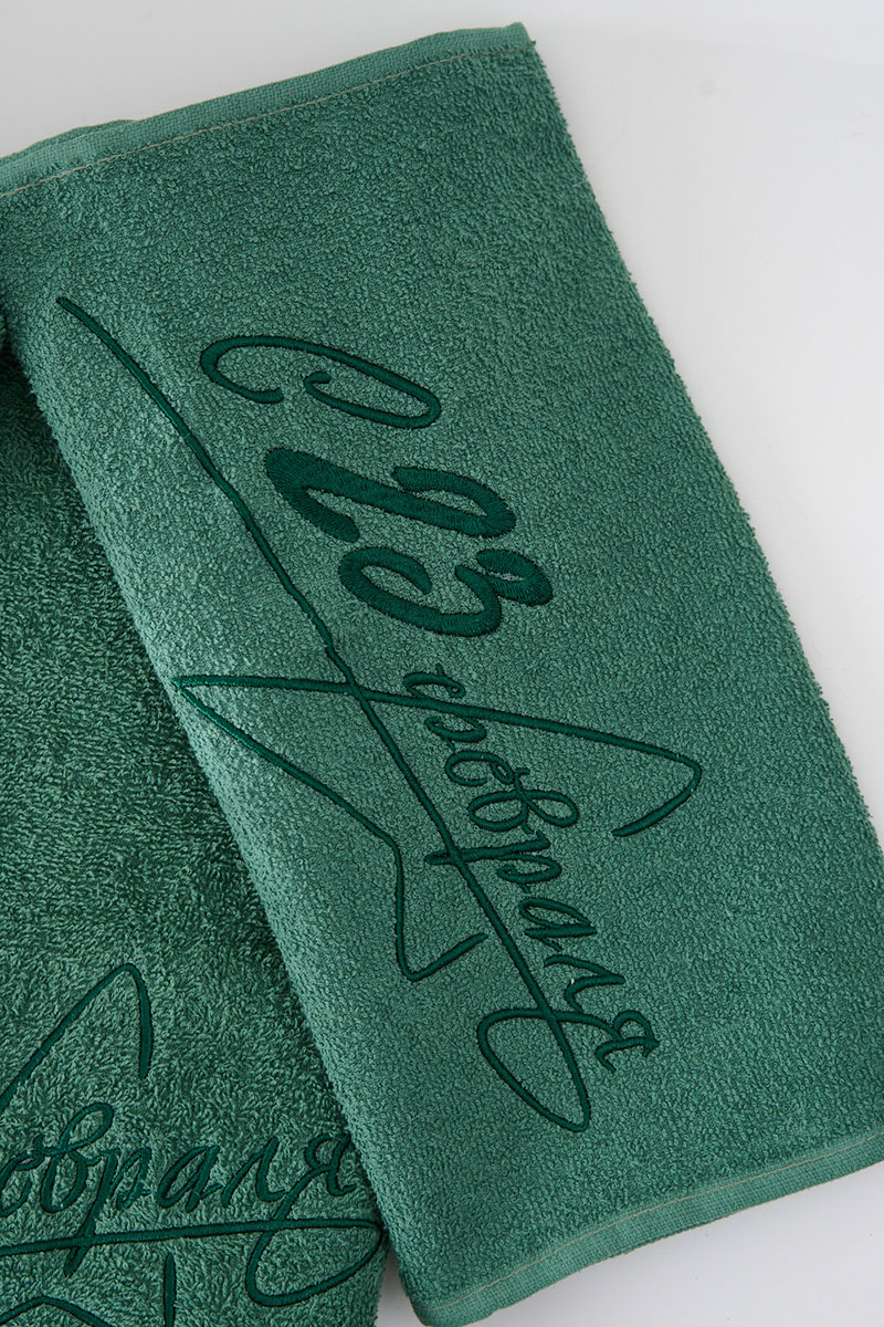 Полотенце махровое с вышивкой №14418/13 "23 февраля" зеленый