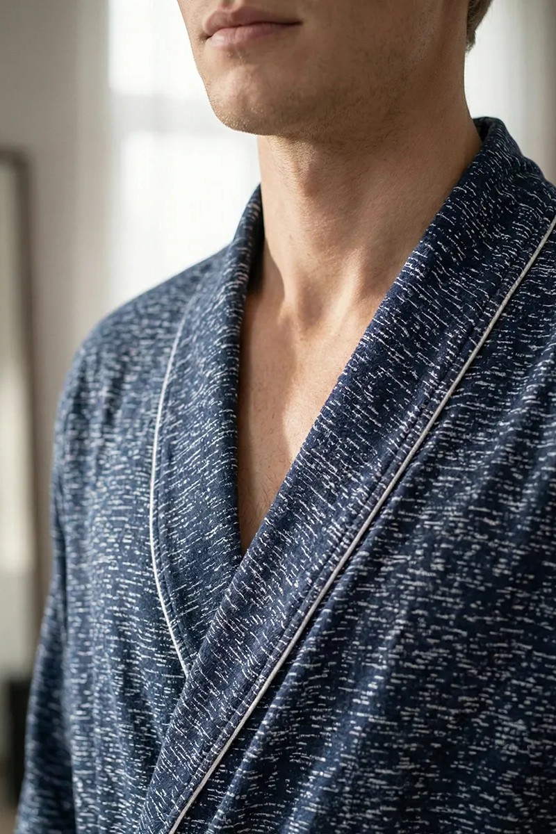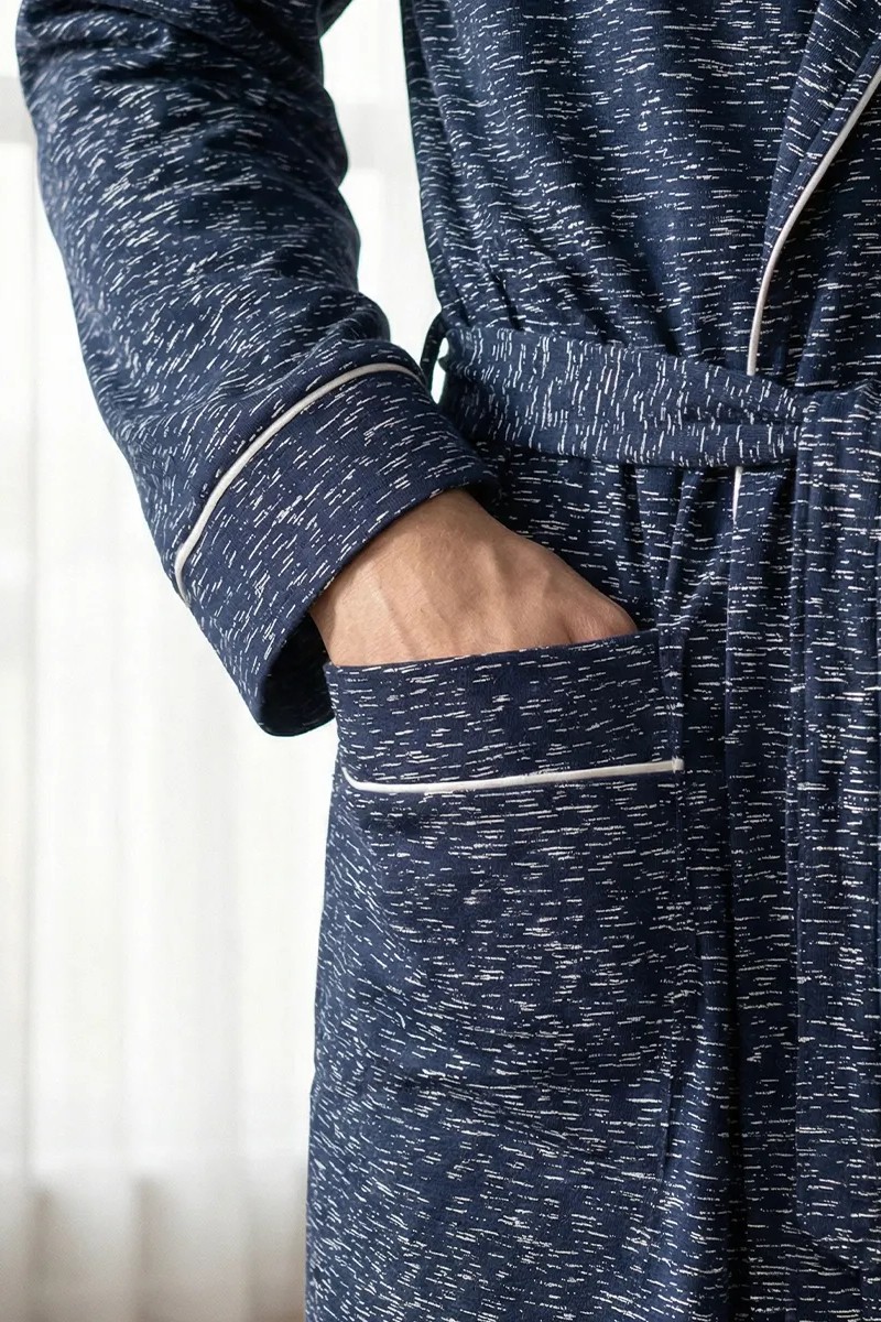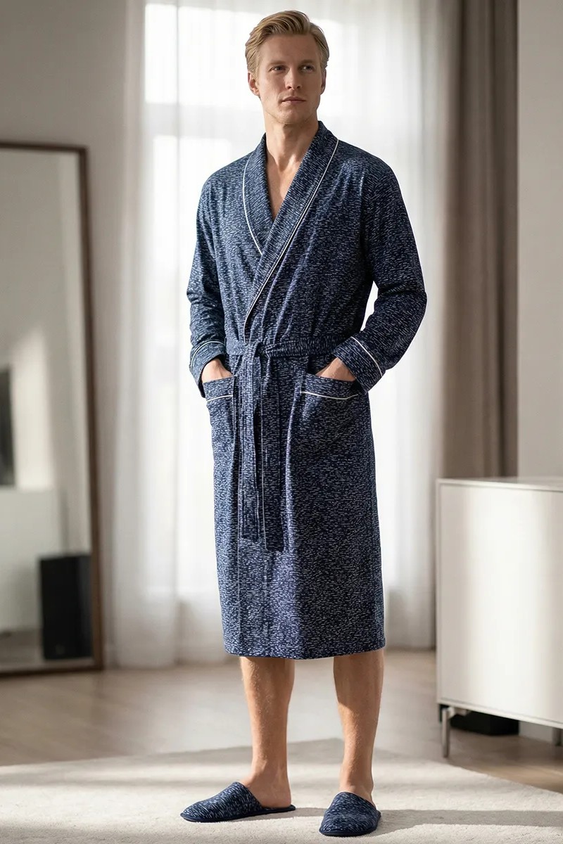 Представляем Вашему вниманию мужской халат, в котором идеально всё. Он создан для комфортного утра с чашкой кофе, для отдыха после душа или уютного вечера дома. Невероятный комфорт: Легкая и дышащая ткань (кулирка, 100% хлопок) дарит ощущение свежести и уюта. Продуманный стиль: Классический крой дополнен элегантным белым кантом, который превращает обычный халат в стильную домашнюю одежду. Удобство в каждой детали: Пояс для идеальной посадки и два вместительных кармана для необходимых мелочей. Идеальная посадка для всех: Благодаря широкому размерному ряду (48-62) каждый мужчина найдет свой идеальный размер.