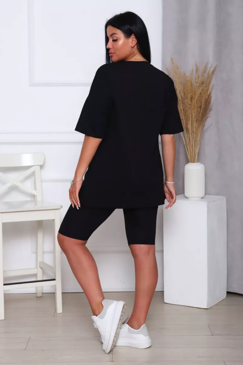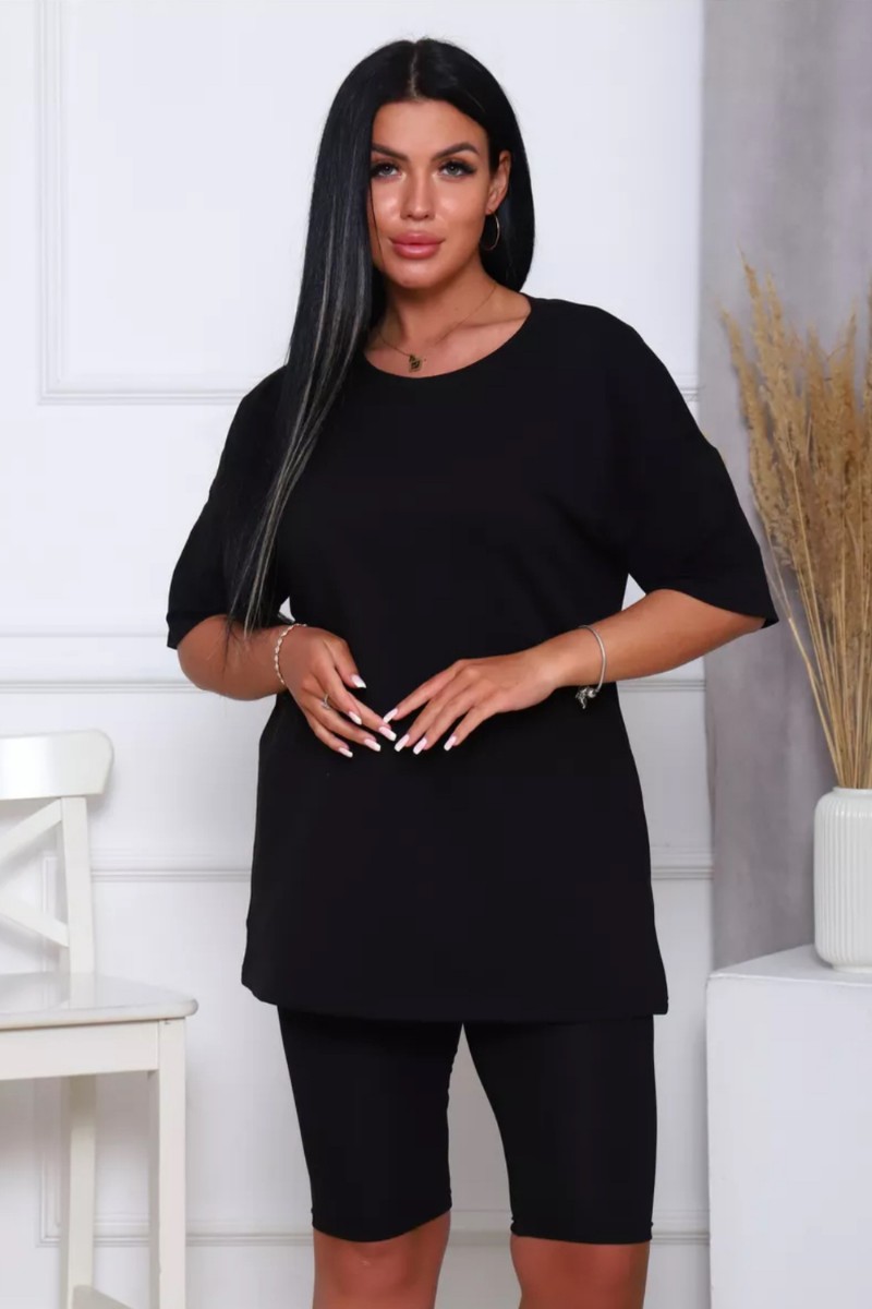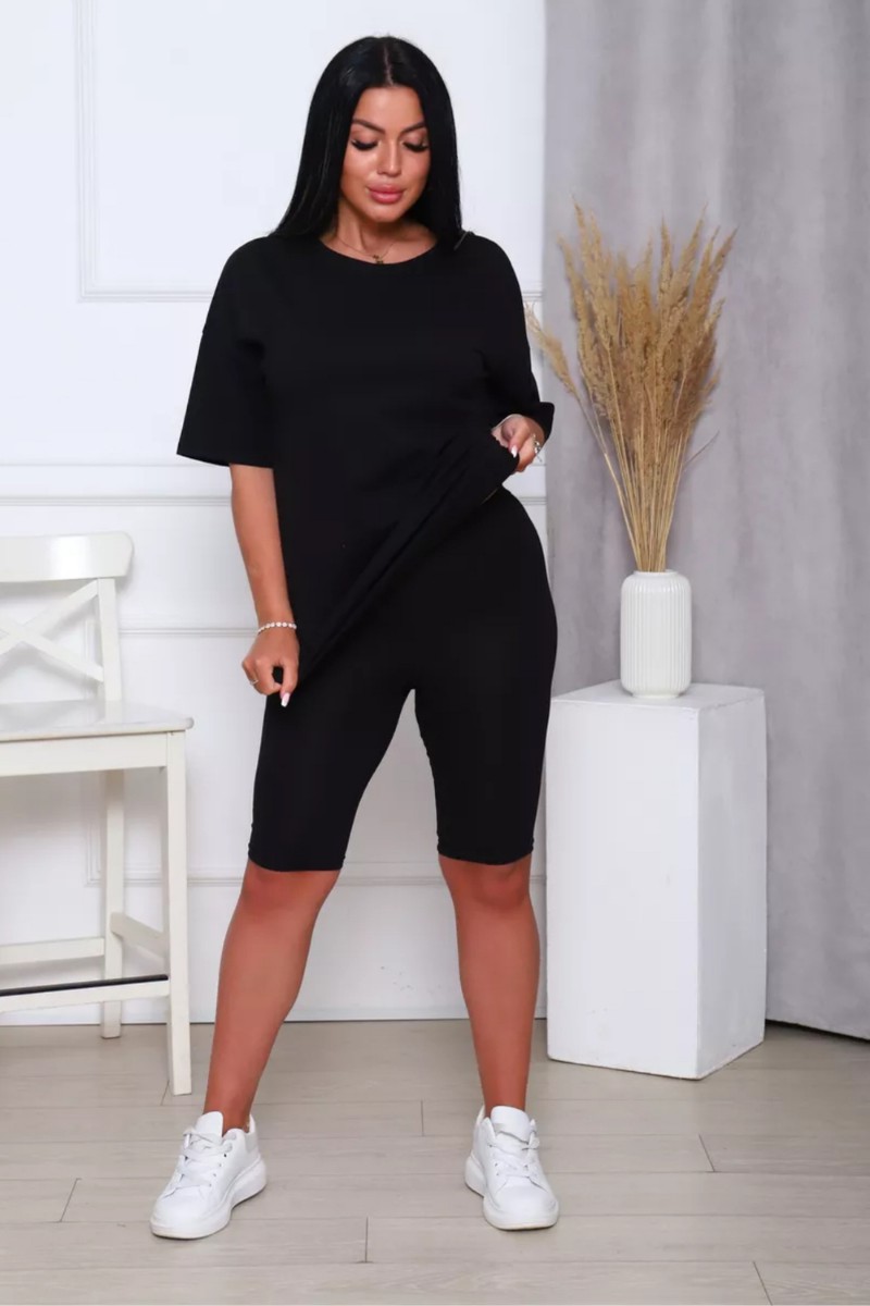 Представляем Вашему вниманию женский костюм, идеальный для любых теплых дней! Этот великолепный комплект из двух предметов сочетает в себе современный дизайн и исключительный комфорт. Свободная футболка оверсайз с коротким рукавом создает непринужденный силуэт, позволяя вам двигаться легко и непринужденно. Сочетающиеся с ней велосипедки с высокой талией подчеркнут ваши изящные ноги, обеспечивая максимальную свободу движений. Этот универсальный костюм с легинсами подходит для множества случаев. Отправляетесь на пробежку в парк? Спортивный стиль сделает вашу тренировку комфортной. Собираетесь на дачу? Легкая и дышащая ткань обеспечит прохладу и удобство. Ищете стильный наряд для прогулки по городу или отдыха на море? Яркие цвета и модный дизайн сделают вас центром внимания. Мы верим, что стиль должен быть доступен для всех женщин. Этот костюм представлен в широком диапазоне размеров, от самых маленьких до больших, включая размеры для беременных. Независимо от вашей фигуры, вы найдете идеальную посадку, которая подчеркнет ваши лучшие стороны. Мы знаем, что комфорт - это ключ. Вот почему наш костюм изготовлен из высококачественного трикотажа на основе хлопка. Этот мягкий и приятный для кожи материал обеспечит вам прохладу и сухость в течение всего дня. Гипоаллергенные свойства хлопка делают его идеальным даже для самой чувствительной кожи. Удлиненный крой футболки и облегающий силуэт бридж создают стильный и современный образ. Яркие и модные цвета сделают вас заметной в любой толпе. Дополните образ модными аксессуарами, чтобы создать неповторимый стиль. Этот универсальный костюм подходит не только для занятий фитнесом. Он станет отличным выбором для повседневной носки, отдыха дома или неспешных прогулок с друзьями. Мягкий и дышащий материал обеспечит вам максимальный комфорт в любой ситуации. Наш женский спортивный костюм с футболкой и велосипедками - это идеальный способ добавить стиль и комфорт в свой гардероб.