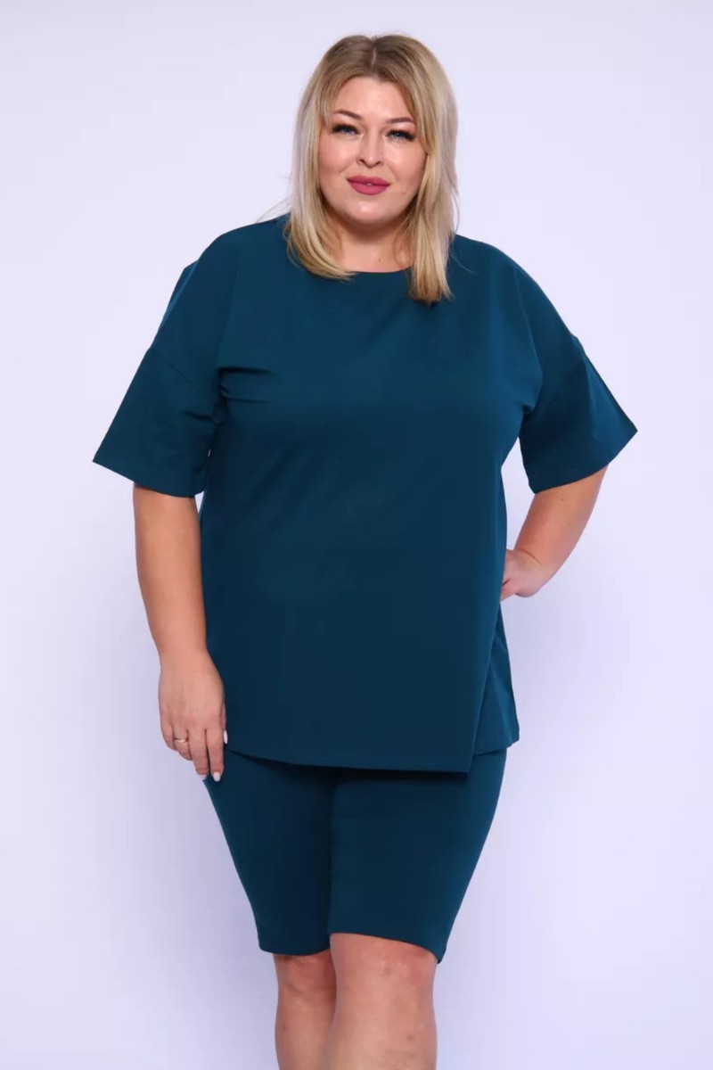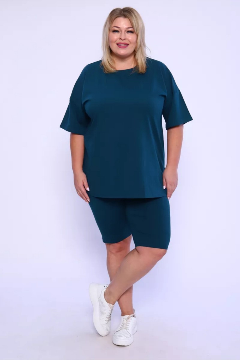 Костюм двойка женский КЖ-002 кулирка с лайкрой (р-ры: 42-66) изумрудный