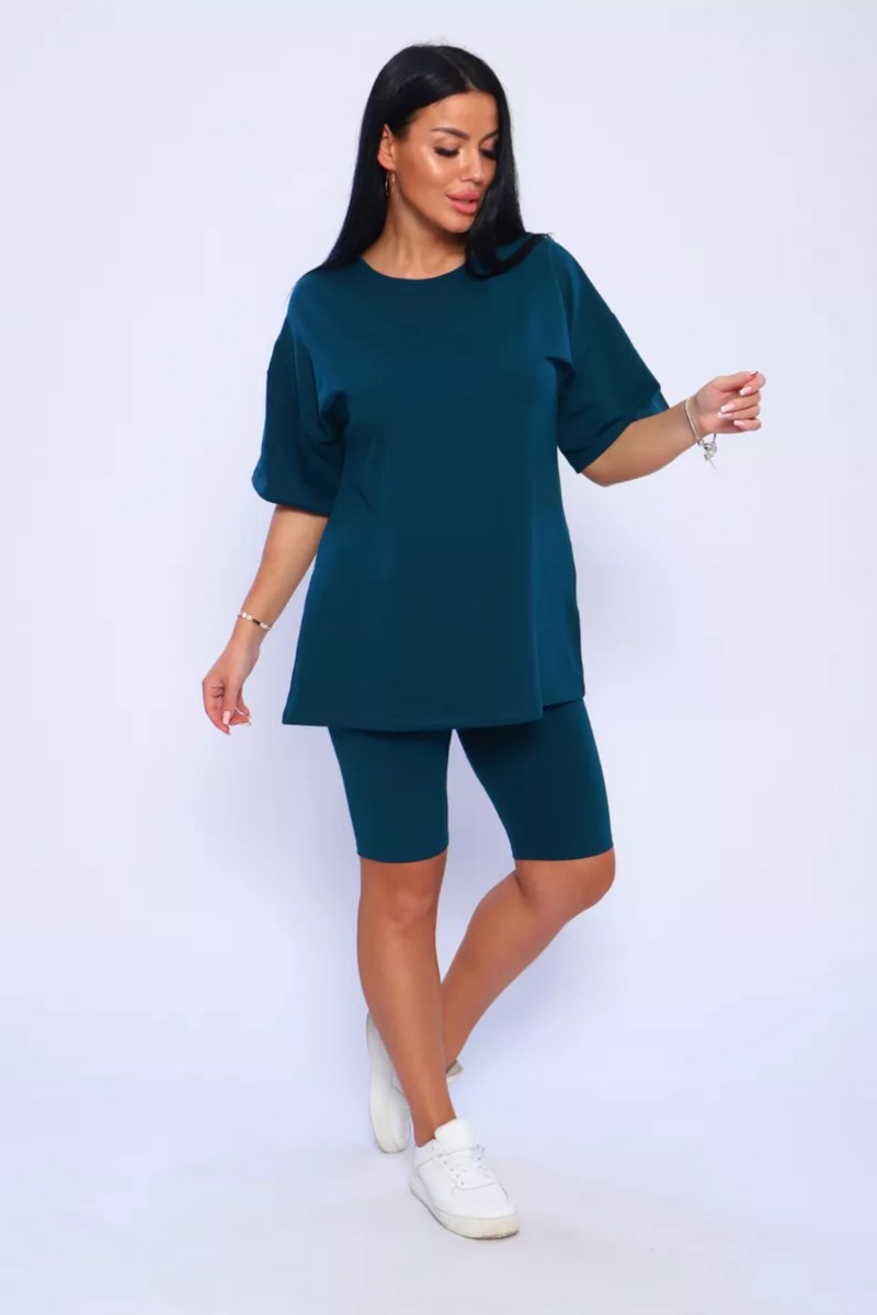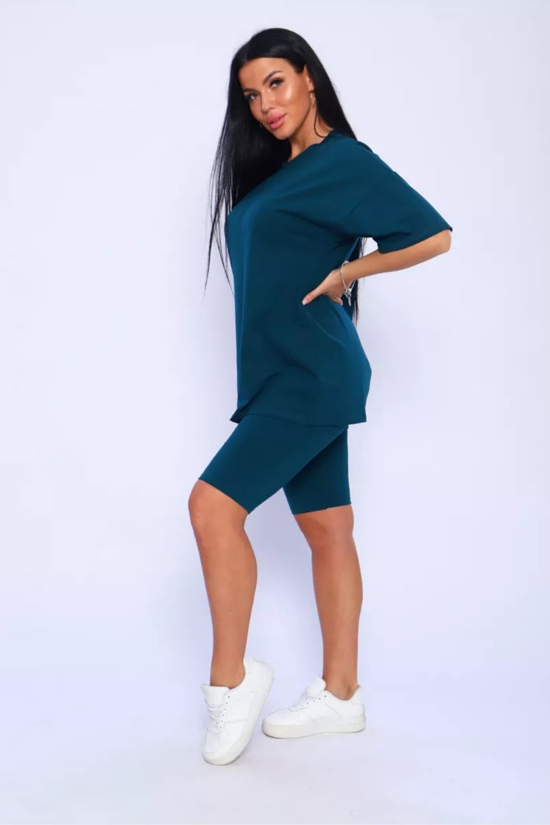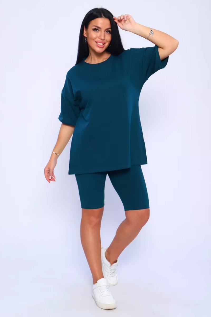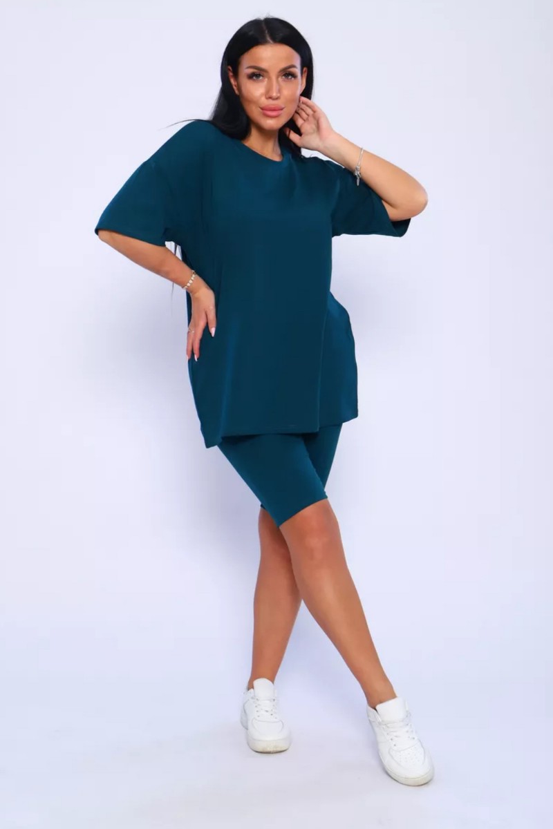 Представляем Вашему вниманию женский костюм, идеальный для любых теплых дней! Этот великолепный комплект из двух предметов сочетает в себе современный дизайн и исключительный комфорт. Свободная футболка оверсайз с коротким рукавом создает непринужденный силуэт, позволяя вам двигаться легко и непринужденно. Сочетающиеся с ней велосипедки с высокой талией подчеркнут ваши изящные ноги, обеспечивая максимальную свободу движений. Этот универсальный костюм с легинсами подходит для множества случаев. Отправляетесь на пробежку в парк? Спортивный стиль сделает вашу тренировку комфортной. Собираетесь на дачу? Легкая и дышащая ткань обеспечит прохладу и удобство. Ищете стильный наряд для прогулки по городу или отдыха на море? Яркие цвета и модный дизайн сделают вас центром внимания. Мы верим, что стиль должен быть доступен для всех женщин. Этот костюм представлен в широком диапазоне размеров, от самых маленьких до больших, включая размеры для беременных. Независимо от вашей фигуры, вы найдете идеальную посадку, которая подчеркнет ваши лучшие стороны. Мы знаем, что комфорт - это ключ. Вот почему наш костюм изготовлен из высококачественного трикотажа на основе хлопка. Этот мягкий и приятный для кожи материал обеспечит вам прохладу и сухость в течение всего дня. Гипоаллергенные свойства хлопка делают его идеальным даже для самой чувствительной кожи. Удлиненный крой футболки и облегающий силуэт бридж создают стильный и современный образ. Яркие и модные цвета сделают вас заметной в любой толпе. Дополните образ модными аксессуарами, чтобы создать неповторимый стиль. Этот универсальный костюм подходит не только для занятий фитнесом. Он станет отличным выбором для повседневной носки, отдыха дома или неспешных прогулок с друзьями. Мягкий и дышащий материал обеспечит вам максимальный комфорт в любой ситуации. Наш женский спортивный костюм с футболкой и велосипедками - это идеальный способ добавить стиль и комфорт в свой гардероб.