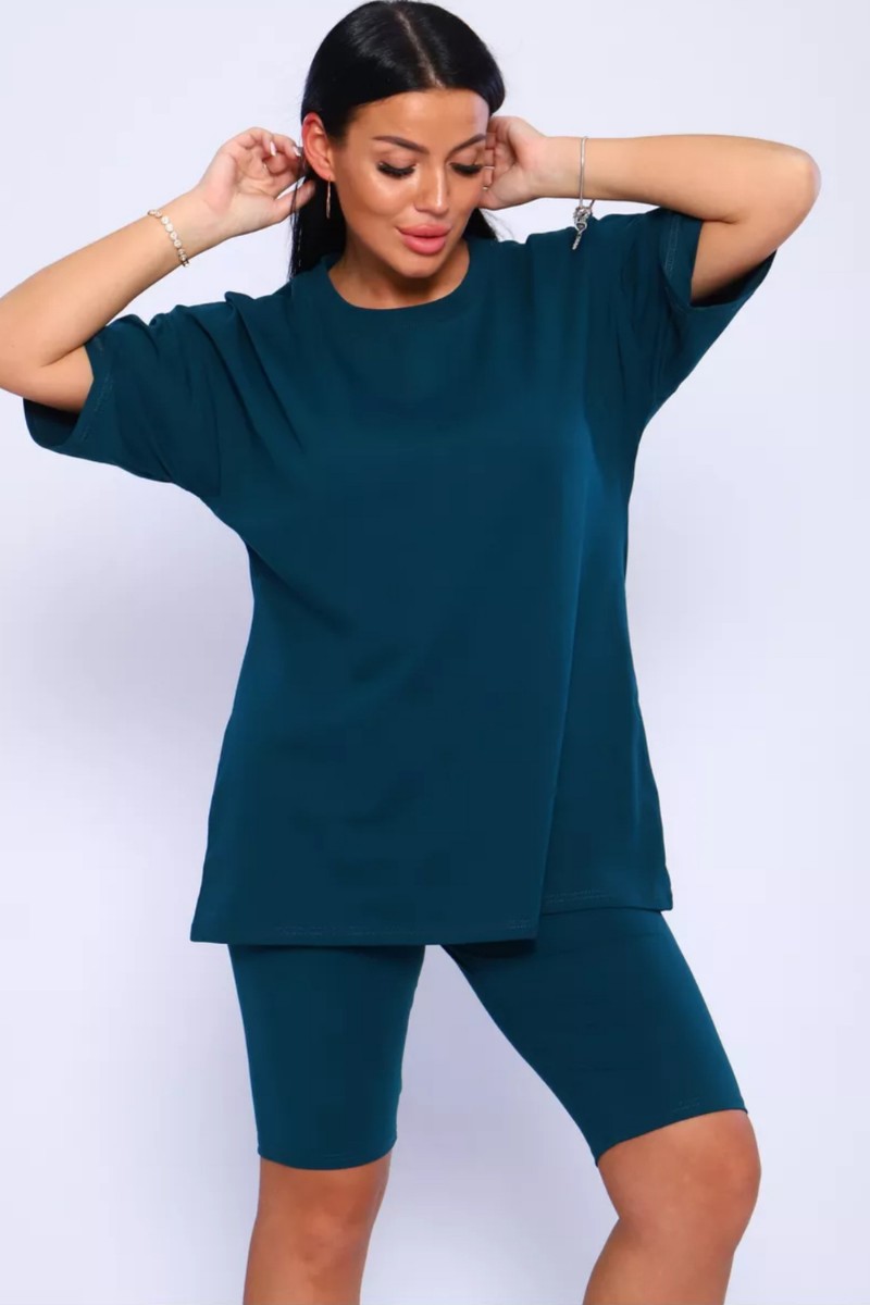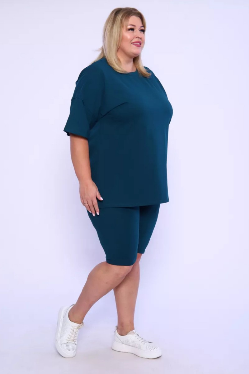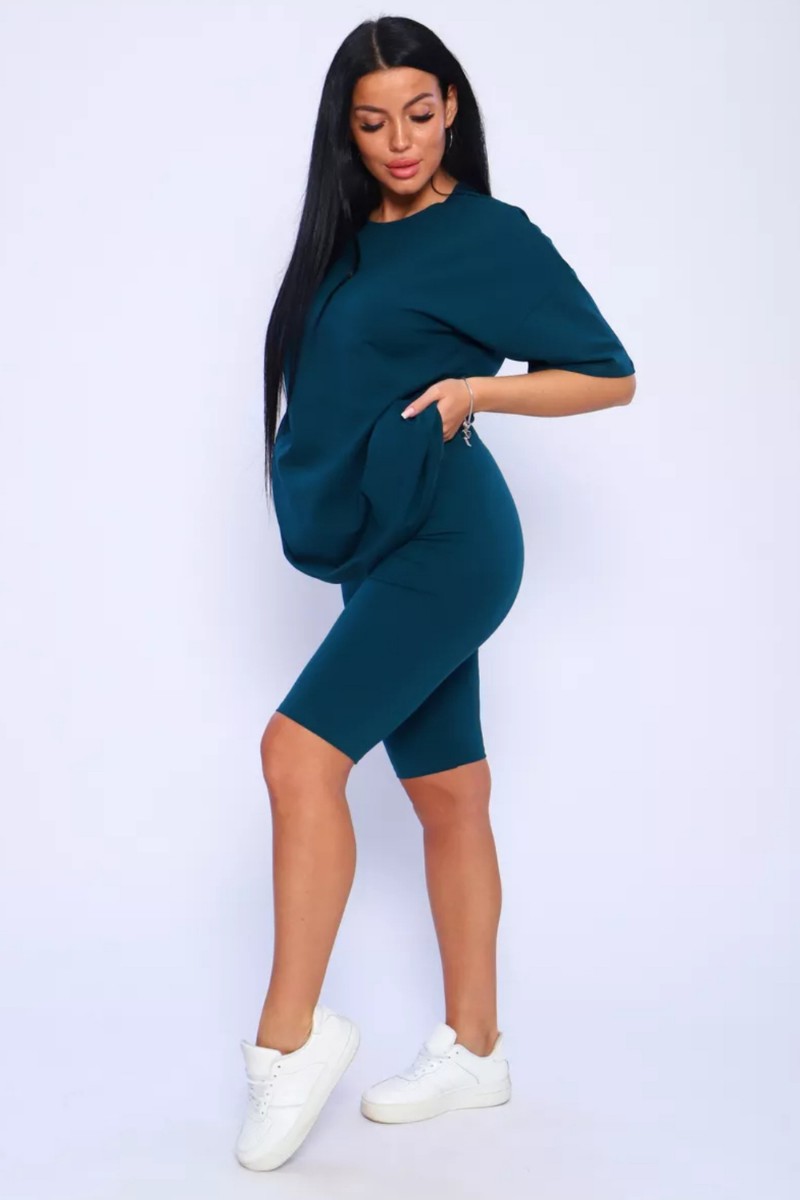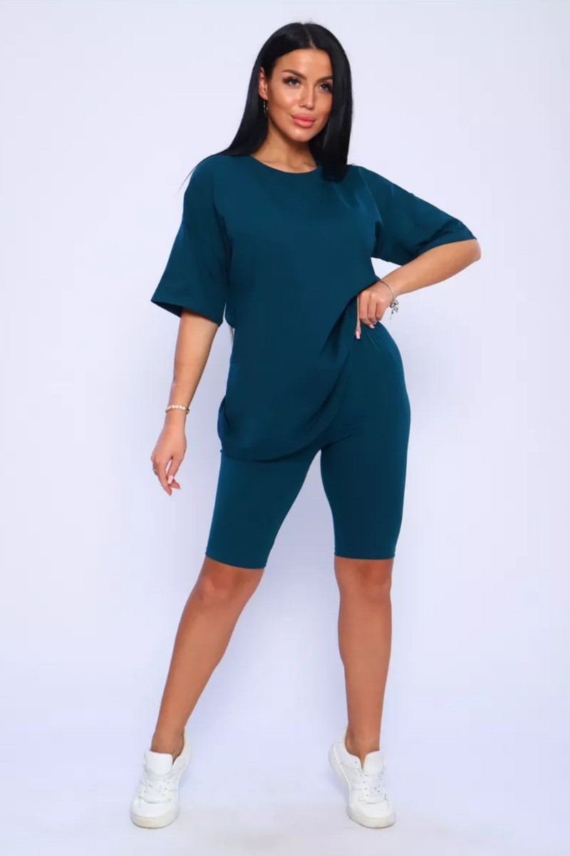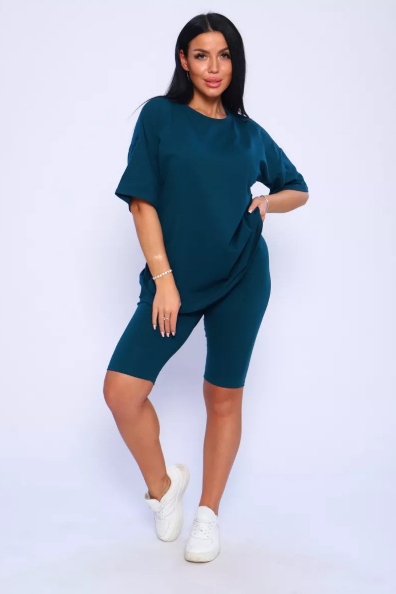 Представляем Вашему вниманию женский костюм, идеальный для любых теплых дней! Этот великолепный комплект из двух предметов сочетает в себе современный дизайн и исключительный комфорт. Свободная футболка оверсайз с коротким рукавом создает непринужденный силуэт, позволяя вам двигаться легко и непринужденно. Сочетающиеся с ней велосипедки с высокой талией подчеркнут ваши изящные ноги, обеспечивая максимальную свободу движений. Этот универсальный костюм с легинсами подходит для множества случаев. Отправляетесь на пробежку в парк? Спортивный стиль сделает вашу тренировку комфортной. Собираетесь на дачу? Легкая и дышащая ткань обеспечит прохладу и удобство. Ищете стильный наряд для прогулки по городу или отдыха на море? Яркие цвета и модный дизайн сделают вас центром внимания. Мы верим, что стиль должен быть доступен для всех женщин. Этот костюм представлен в широком диапазоне размеров, от самых маленьких до больших, включая размеры для беременных. Независимо от вашей фигуры, вы найдете идеальную посадку, которая подчеркнет ваши лучшие стороны. Мы знаем, что комфорт - это ключ. Вот почему наш костюм изготовлен из высококачественного трикотажа на основе хлопка. Этот мягкий и приятный для кожи материал обеспечит вам прохладу и сухость в течение всего дня. Гипоаллергенные свойства хлопка делают его идеальным даже для самой чувствительной кожи. Удлиненный крой футболки и облегающий силуэт бридж создают стильный и современный образ. Яркие и модные цвета сделают вас заметной в любой толпе. Дополните образ модными аксессуарами, чтобы создать неповторимый стиль. Этот универсальный костюм подходит не только для занятий фитнесом. Он станет отличным выбором для повседневной носки, отдыха дома или неспешных прогулок с друзьями. Мягкий и дышащий материал обеспечит вам максимальный комфорт в любой ситуации. Наш женский спортивный костюм с футболкой и велосипедками - это идеальный способ добавить стиль и комфорт в свой гардероб.