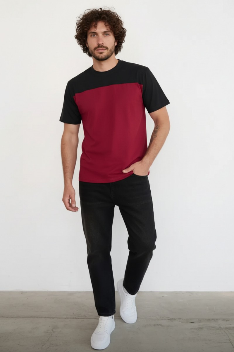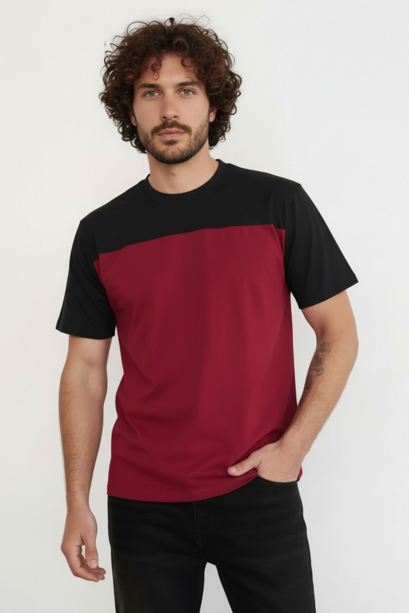 Футболка мужская №14482 кулирка (р-ры: 46-58) бордо-черный