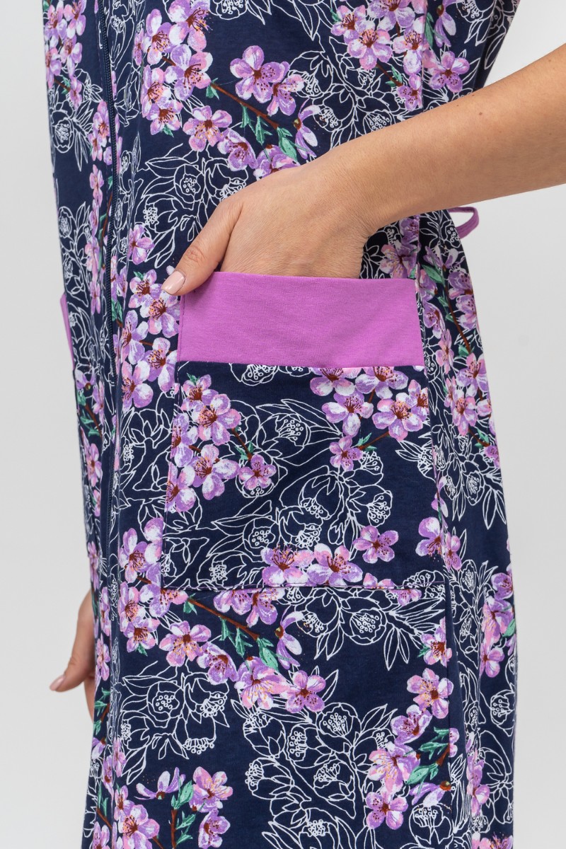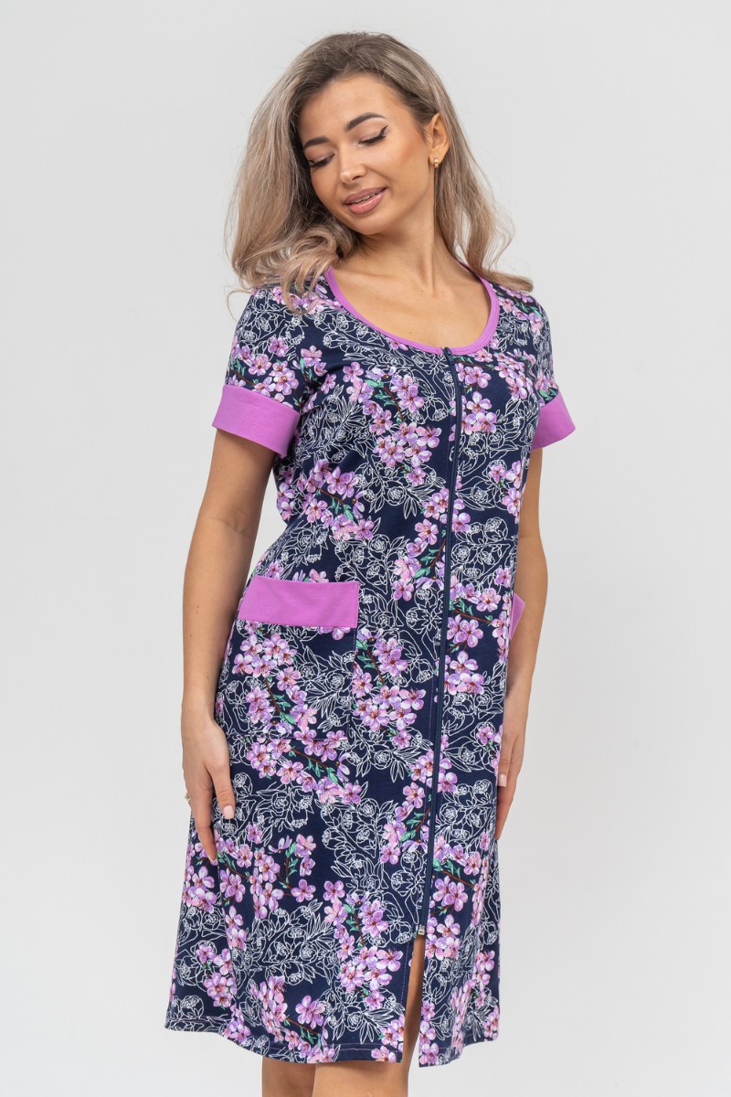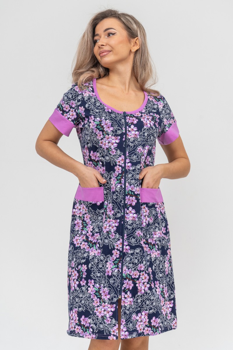 Представляем Вашему вниманию женский халатик на молнии – самая распространенная и универсальная одежда для домашнего отдыха и хозяйственных хлопот. После трудного рабочего дня, приходя домой, первым делом хочется переодеться. И данная модель это идеальный вариант среди представительниц прекрасной половины человечества. Модель выполнена из 100% хлопчатобумажной ткани. Халат так же дополняет яркая отделка по рукавам и карманам. А пояс на линии талии поможет легко смоделировать женственный силуэт и при этом Вы будете чувствовать себя легко и непринуждённо. Данная модель прекрасно подойдёт для дома, дачи и отдыха, создавая по-настоящему яркий образ и хорошее настроение!
