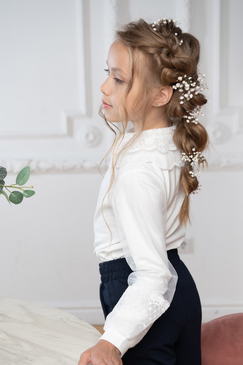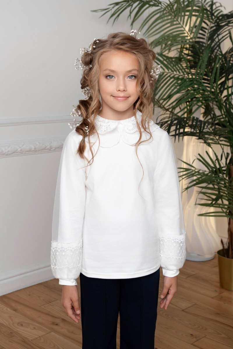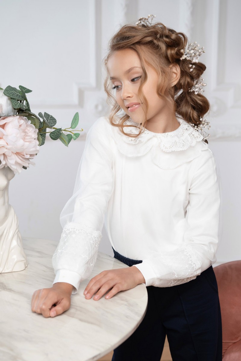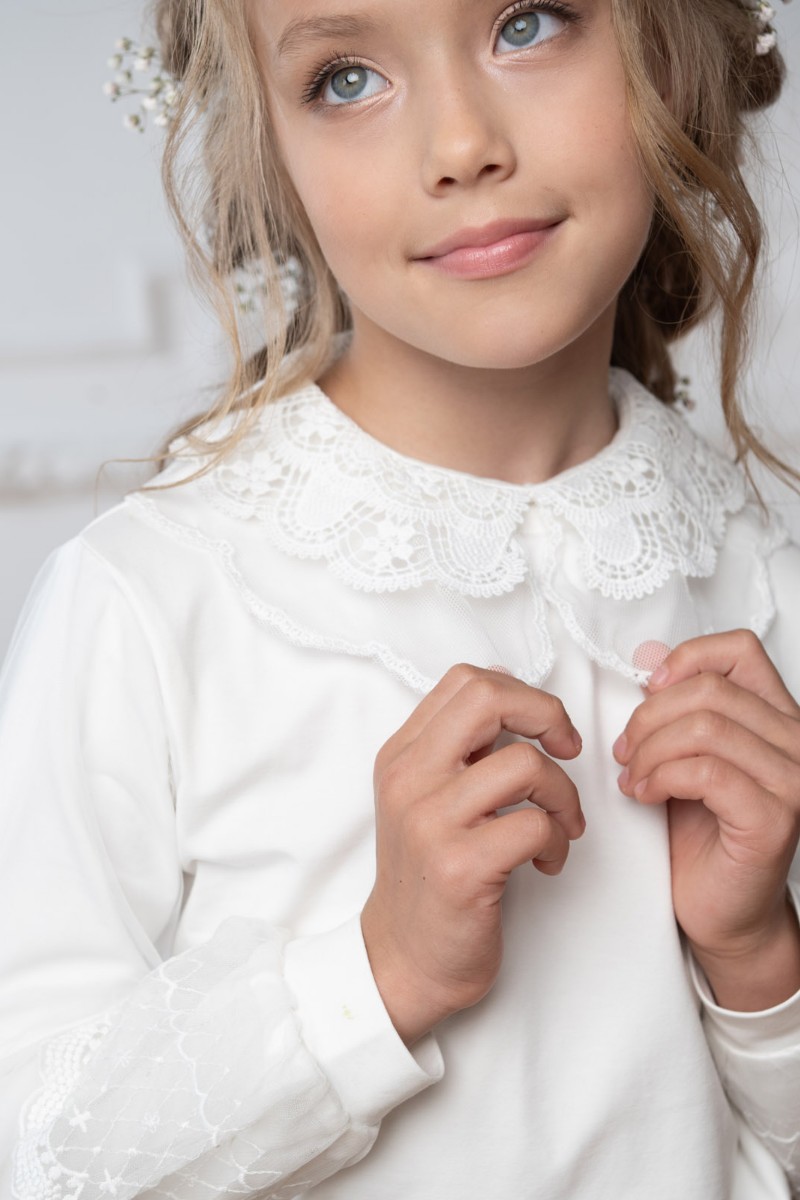 Представляем Вашему вниманию школьную блузку "Виктория", выполненную из мягкого хлопкового трикотажа с кружевным воротником и прозрачными рукавами из сеточки. Лёгкая, приятная к телу и нарядная. Идеально подходит для школы, праздников и торжественных линеек.