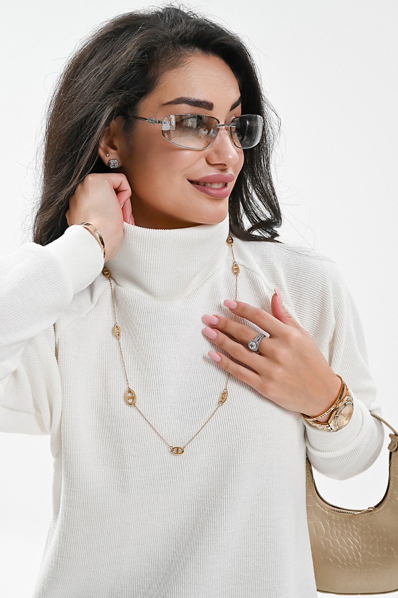 Представляем Вашему вниманию стильное вязаное платье черного, бежевого и белого цвета станет незаменимой вещью в вашем осенне-зимнем гардеробе. Модель прямого покроя с длинными рукавами и воротником-стойкой прекрасно подойдет для повседневной носки. Разрез на юбке добавляет образу изысканности и женственности. Платье выполнено из мягкого и приятного к телу материала с добавлением спандекса, что обеспечивает комфорт и свободу движений. Его универсальный цвет легко сочетается с различными аксессуарами и обувью.