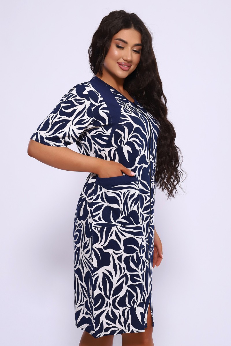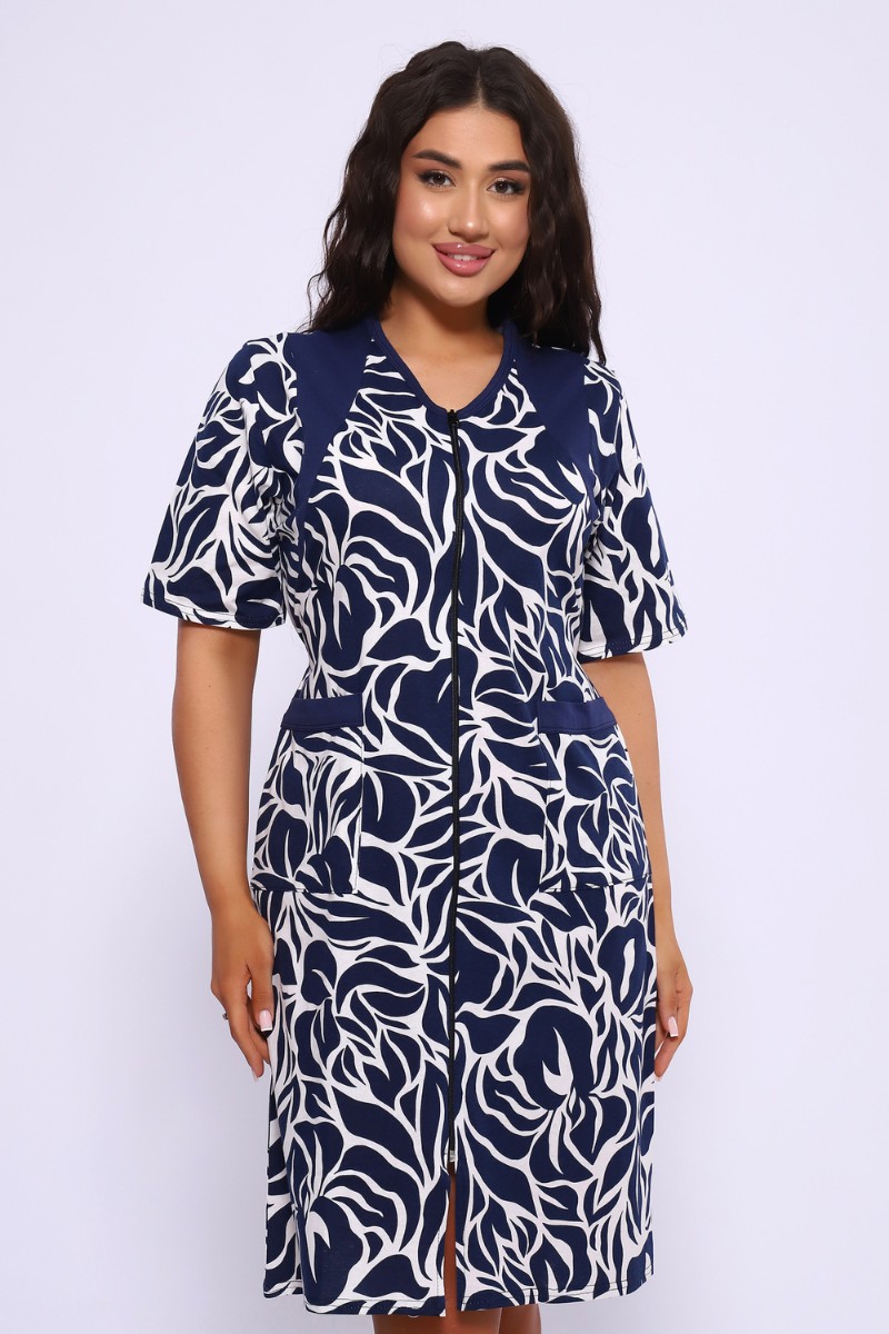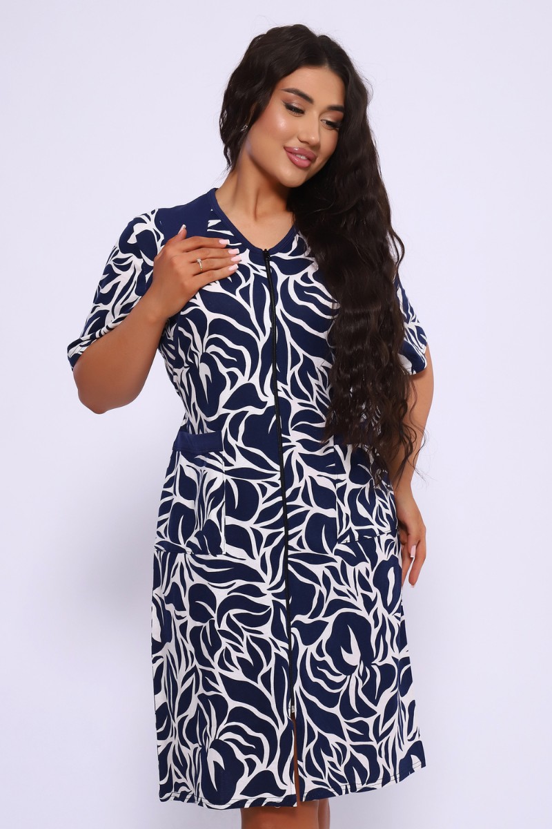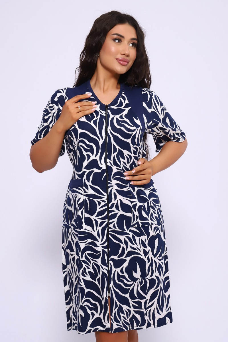 Халат женский №39042 кулирка (р-ры: 46-72) темно-синий