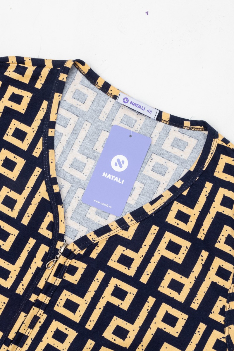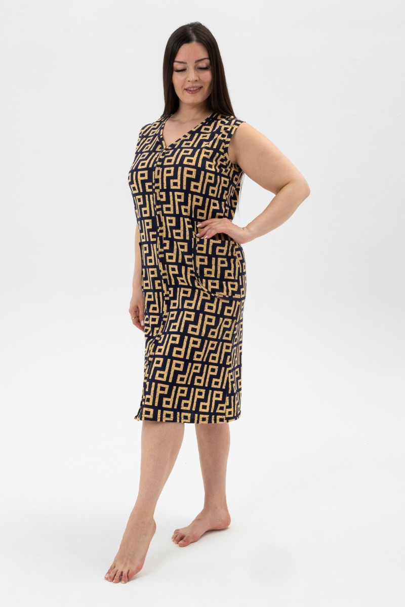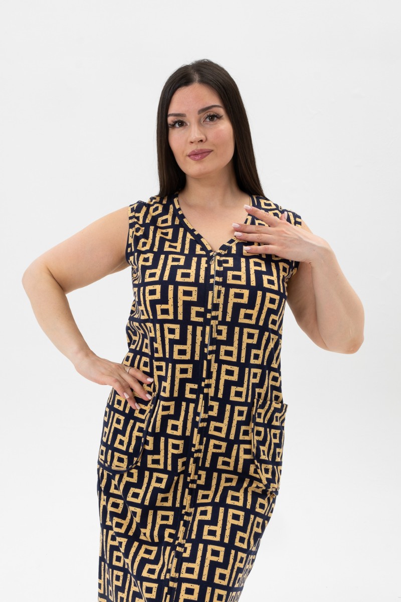 Представляем Вашему вниманию халат-сарафан на молнии для дома и дачи. Простой, удобный, ничего лишнего. Рекомендуется стирка при 30 градусах. Оригинальная расцветка, накладные карманы. Носите с удовольствием.